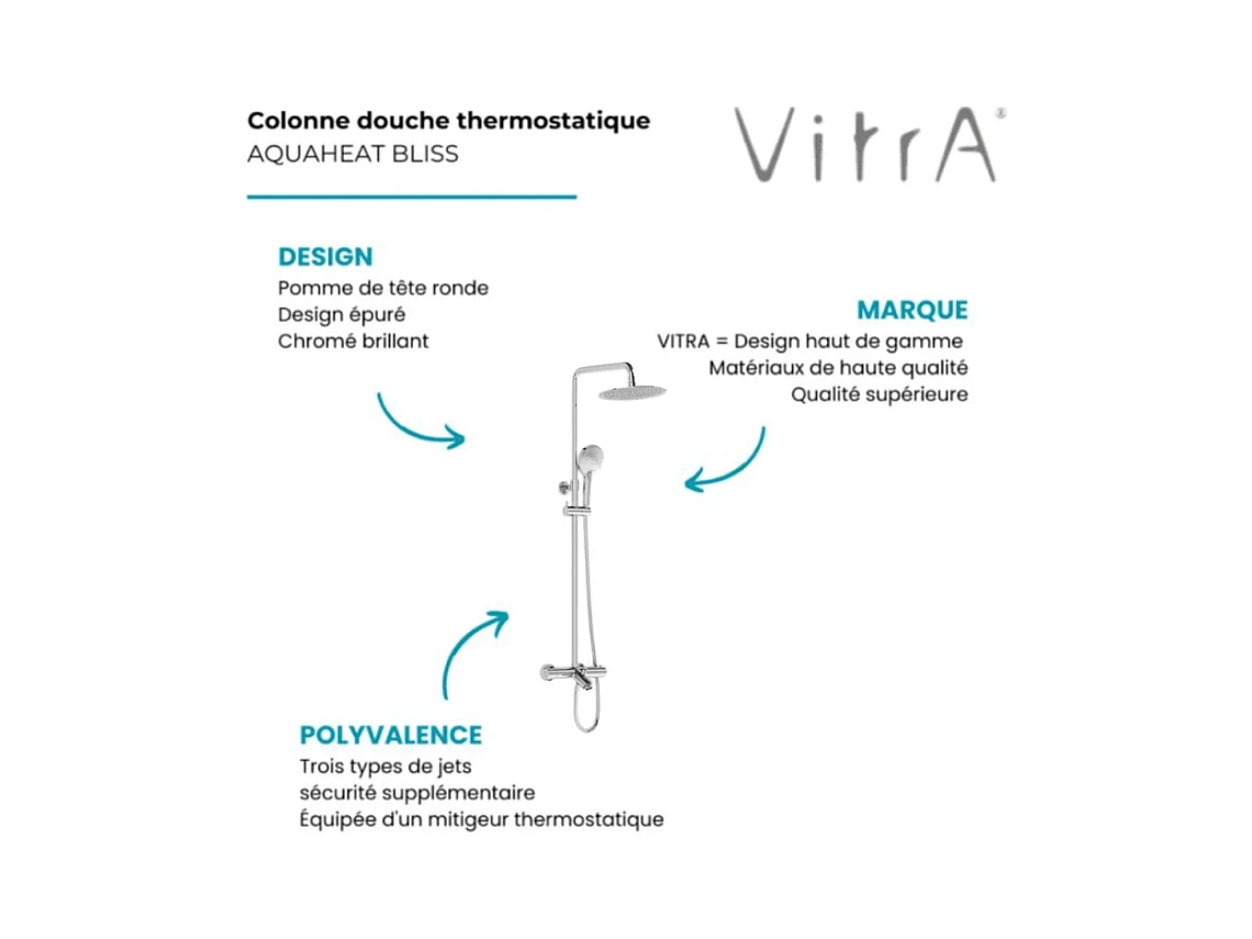 Colonne bain douche thermostatique VITRA Aquaheat Bliss 250 B