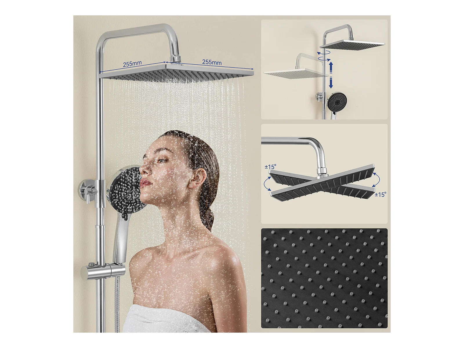 AICA colonne de douche thermostatique en acier inoxydable avec douchette 3 jets, réglable en hauteur