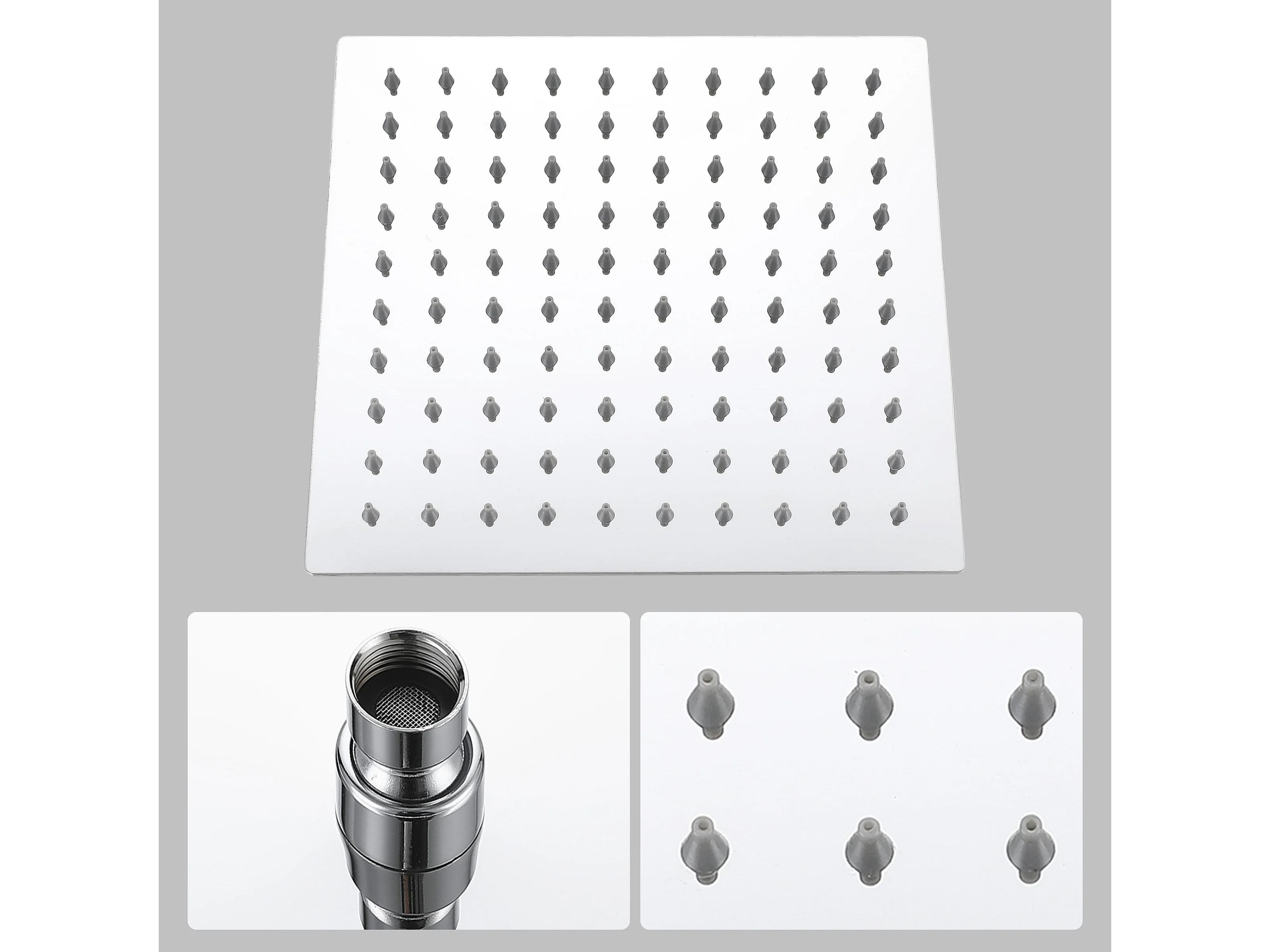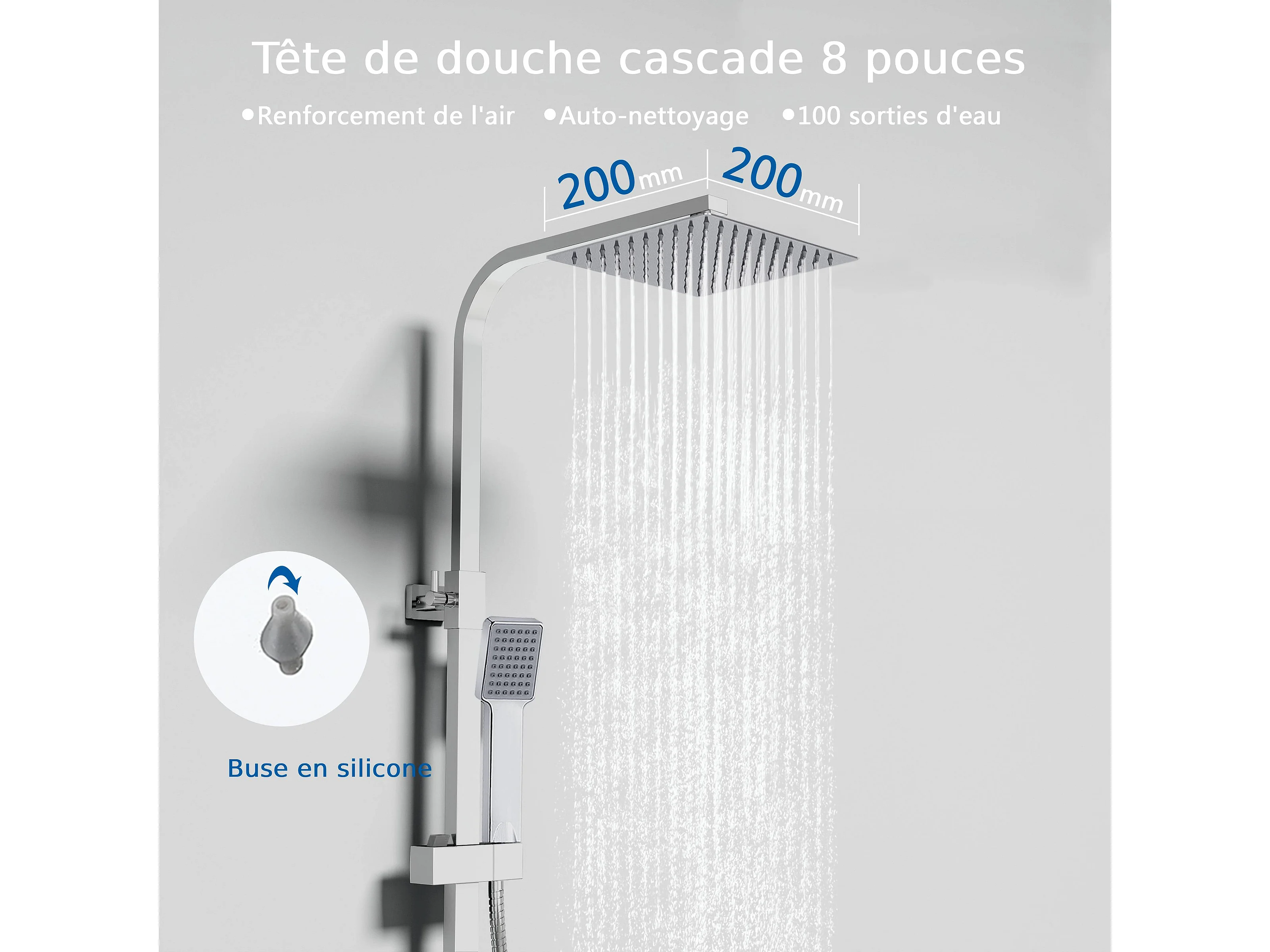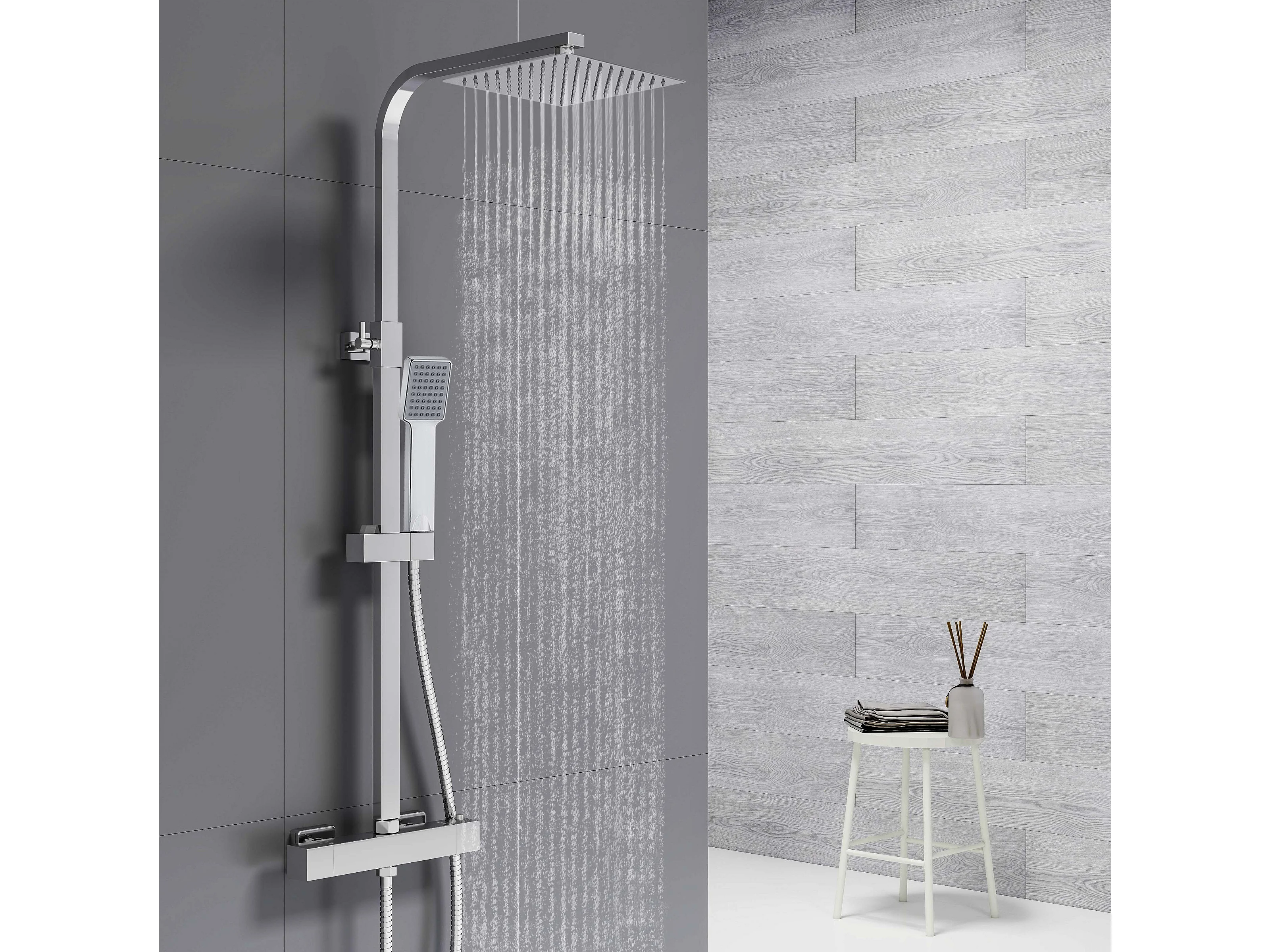 AICA Colonne de Douche Thermostaique 38 °C Ensemble de douche avec Tête de Douche 25 x 25 cm Douchette 3 Jets Hauteur Réglable- Carrrée