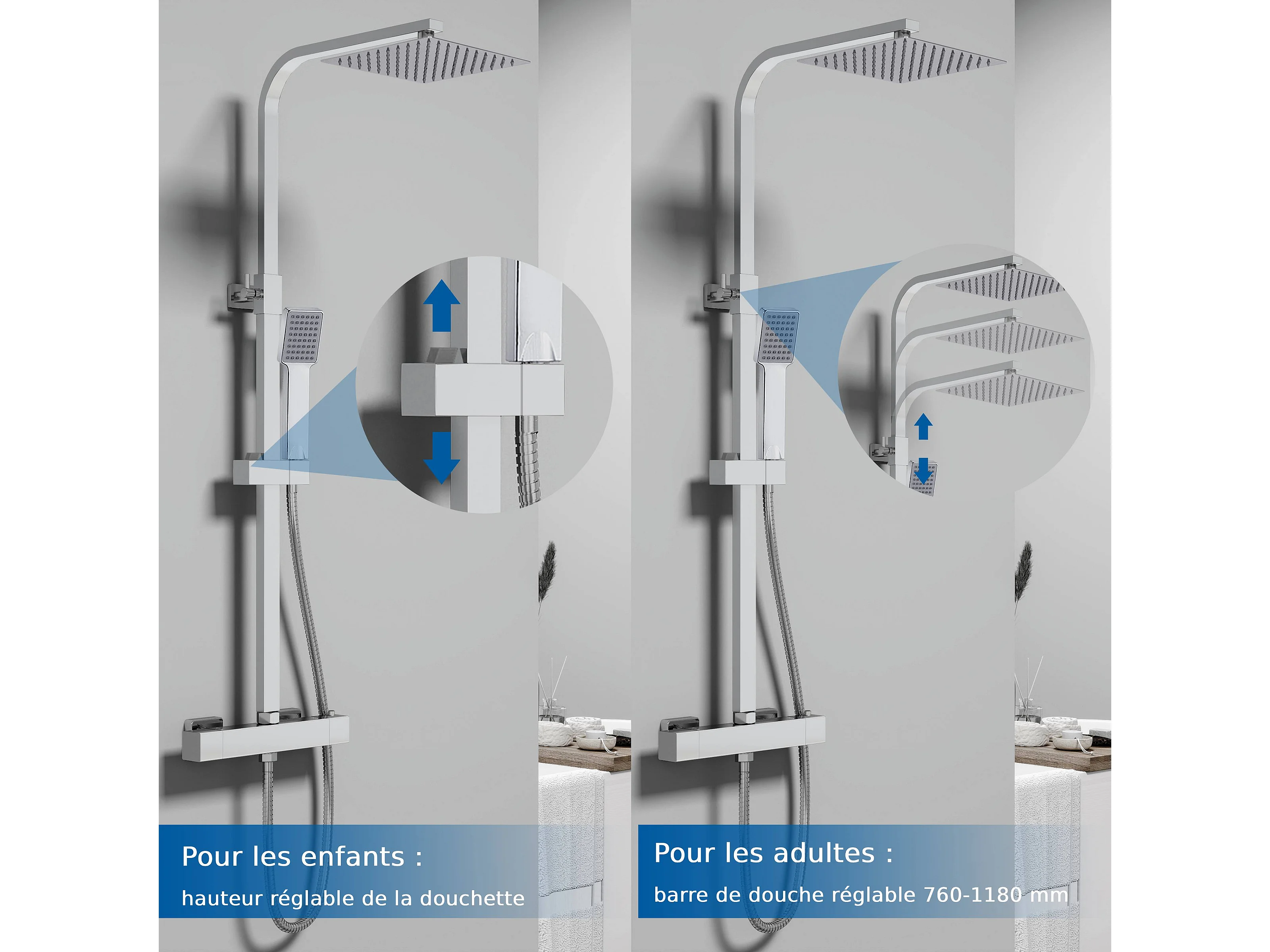 Colonne de douche thermostatique AICA- Système de douche avec douchette 3 jets- Réglable en hauteur