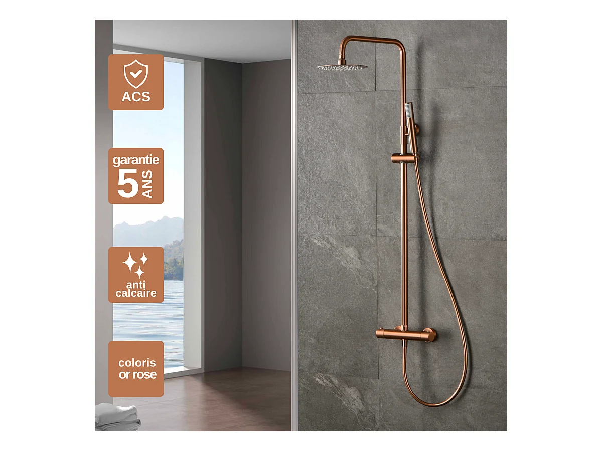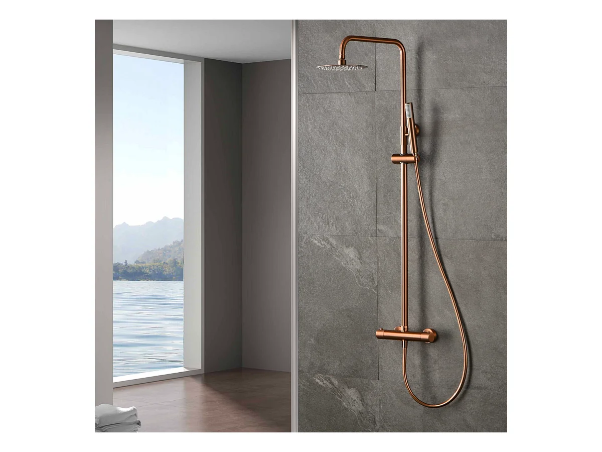 Colonne de Douche Thermostatique Anti-Calcaire Or Rose Cuivré IMEX MONZA BTM039/ORC