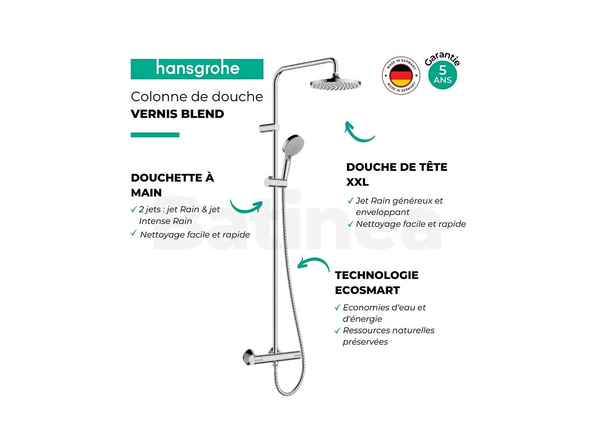 Colonne de douche thermostatique HANSGROHE Vernis Blend 200 Green chromé