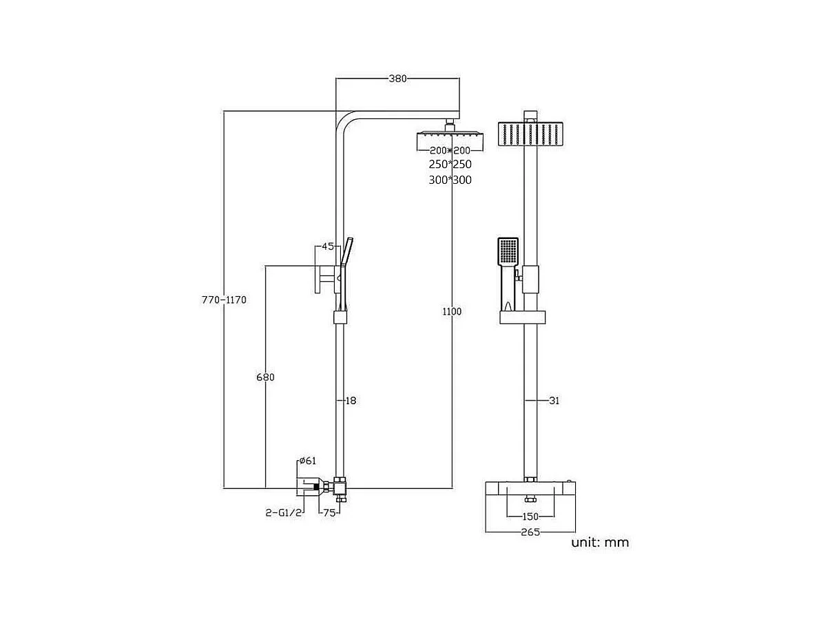 Colonne de douche thermostatique NILA 25 cm x 25 cm