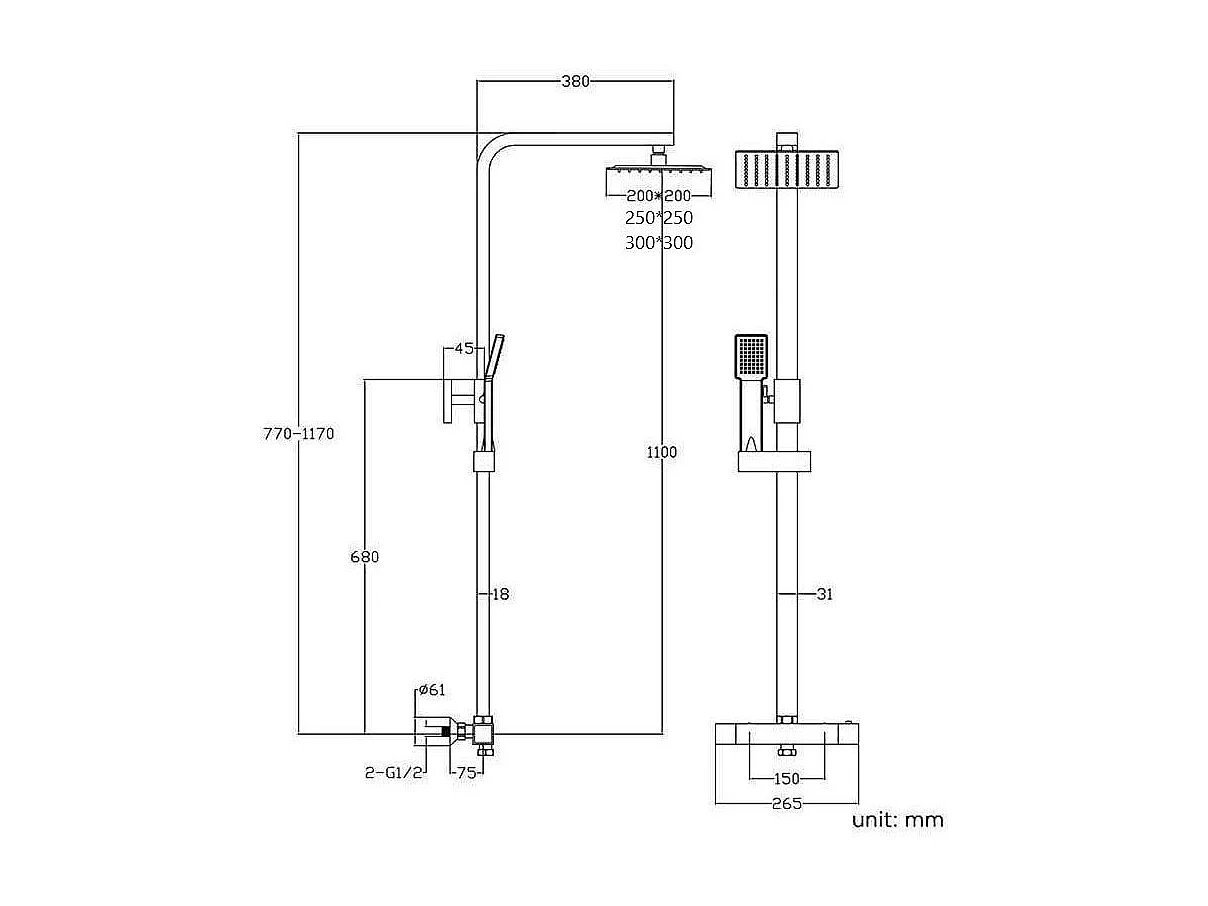 Colonne de douche thermostatique NILA 30 cm x 30 cm