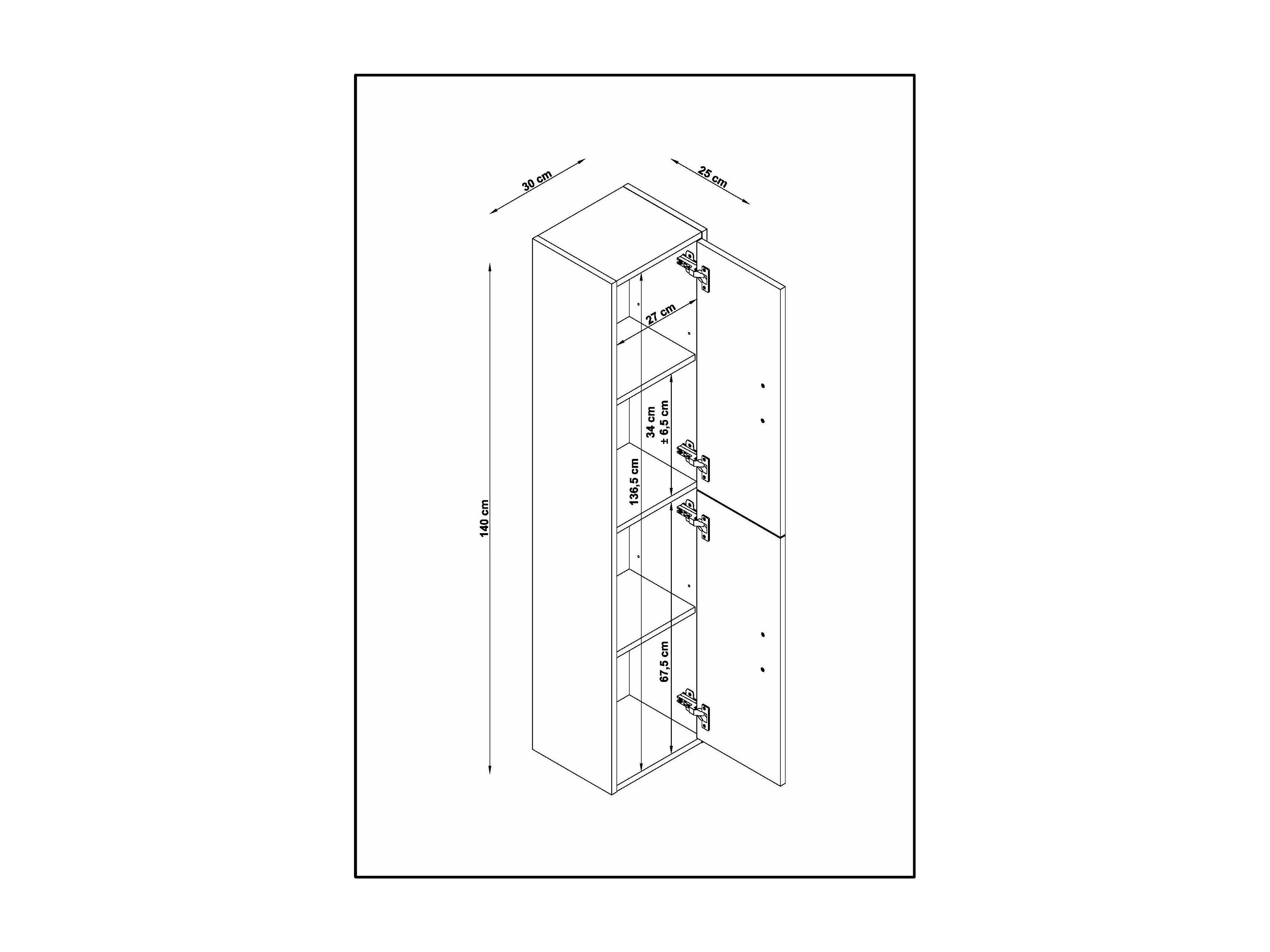 Colonne de salle de bain ANAIS 2 portes 140x30x25 cm chêne et noir T-BATH