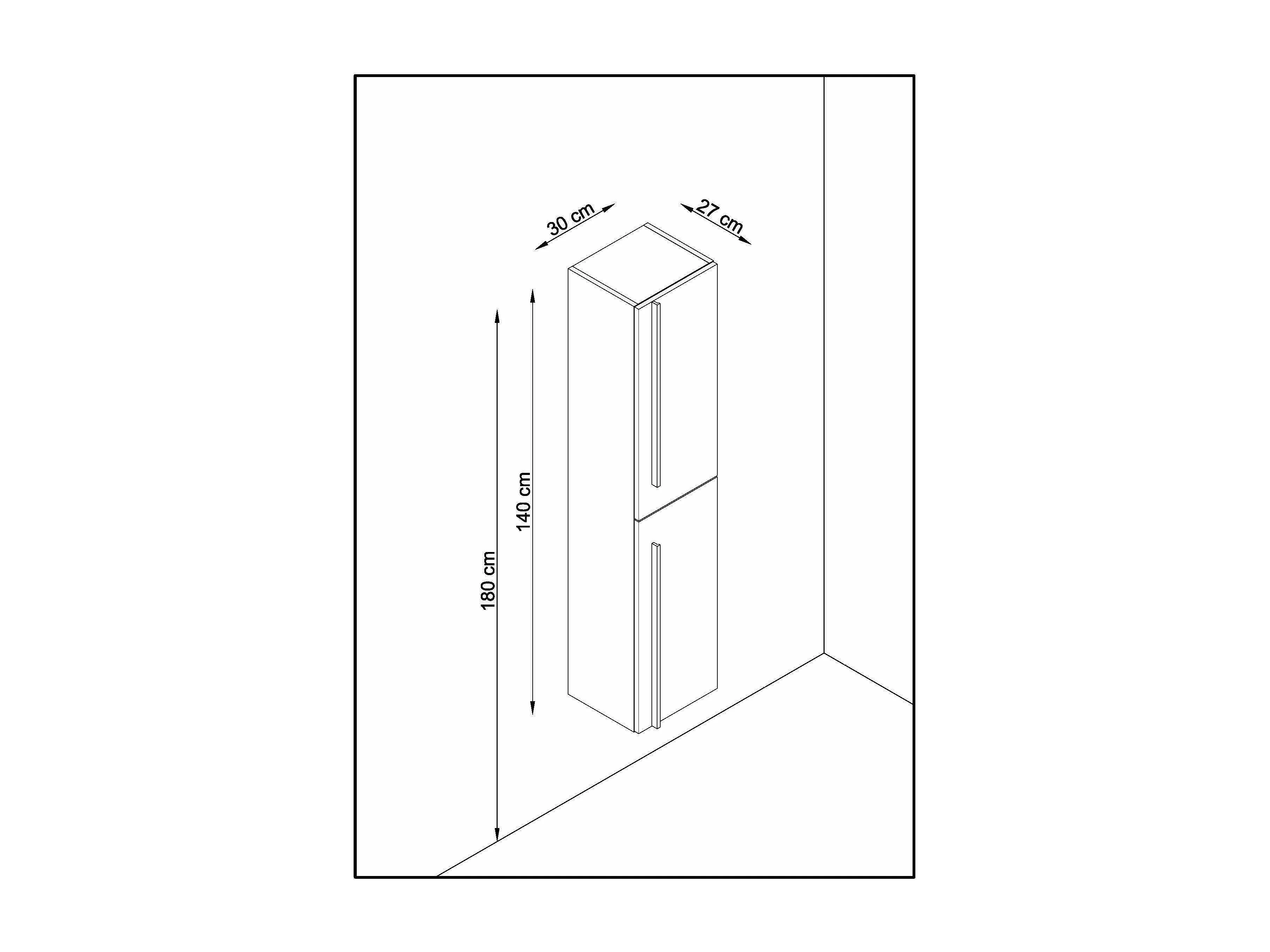 Colonne de salle de bain ANGI 2 portes 140x30x27 cm chêne T-BATH