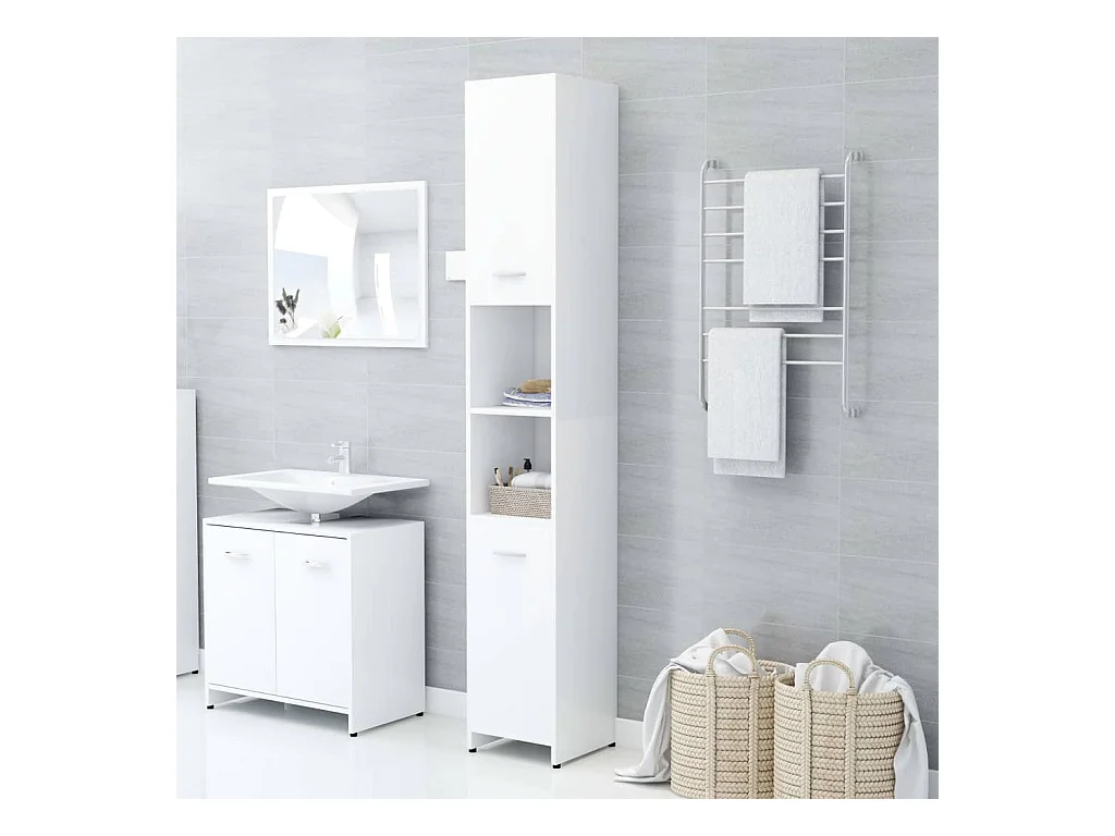 Armoire de salle de bain blanc 30x30x100 cm bois d'ingénierie FR63093