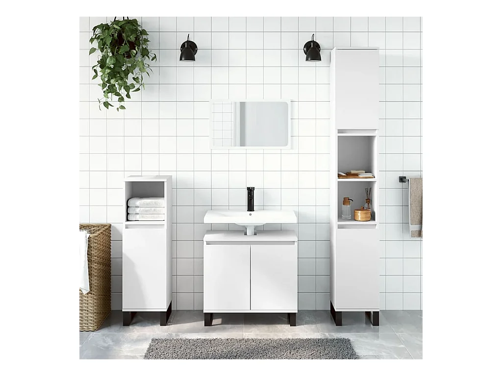Armoire de salle de bain blanc 30x30x100 cm bois d'ingénierie FR63093