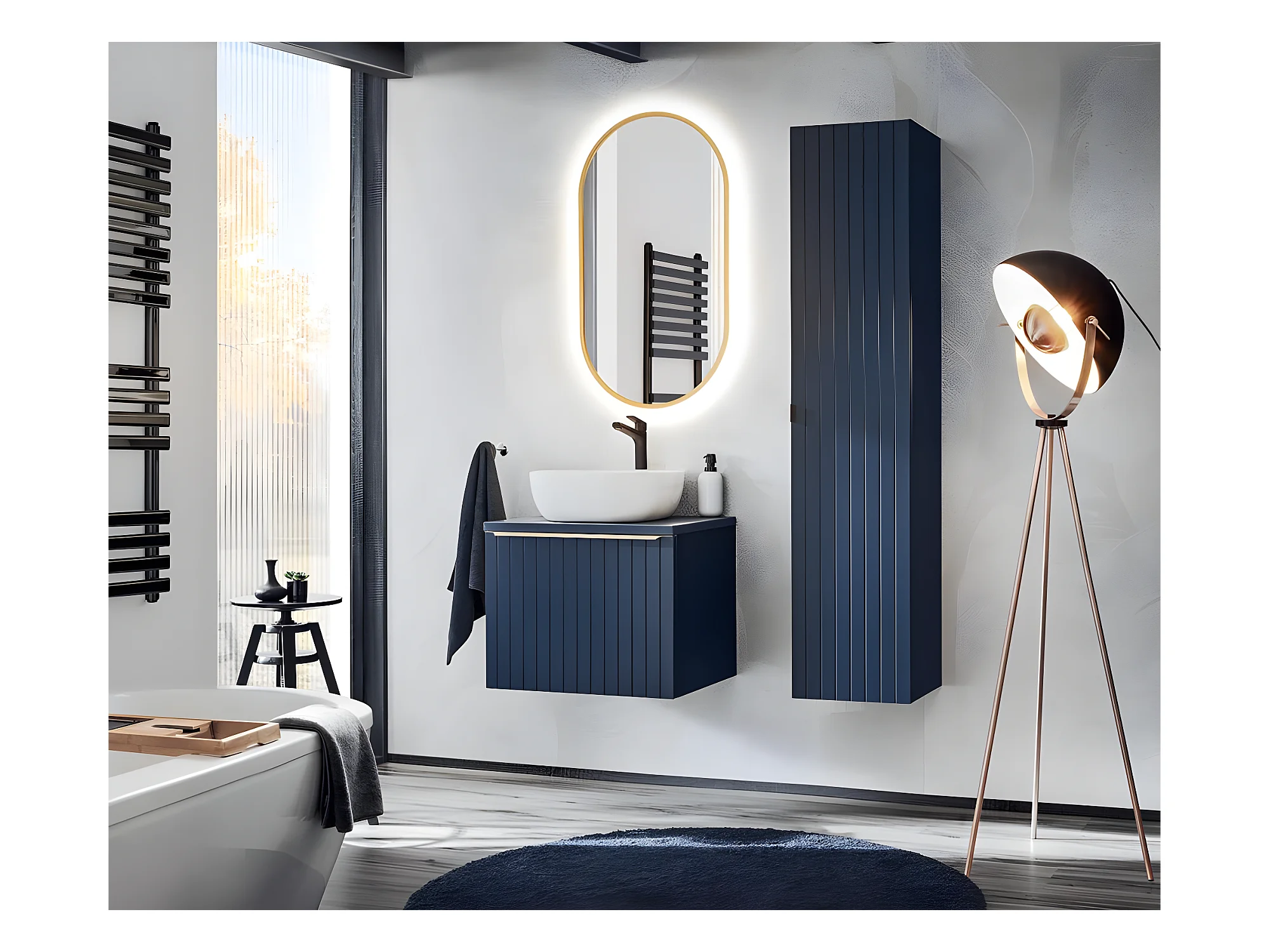 Colonne de salle de bain - Bleu indigo- L35-H160-P33 - KLAUS