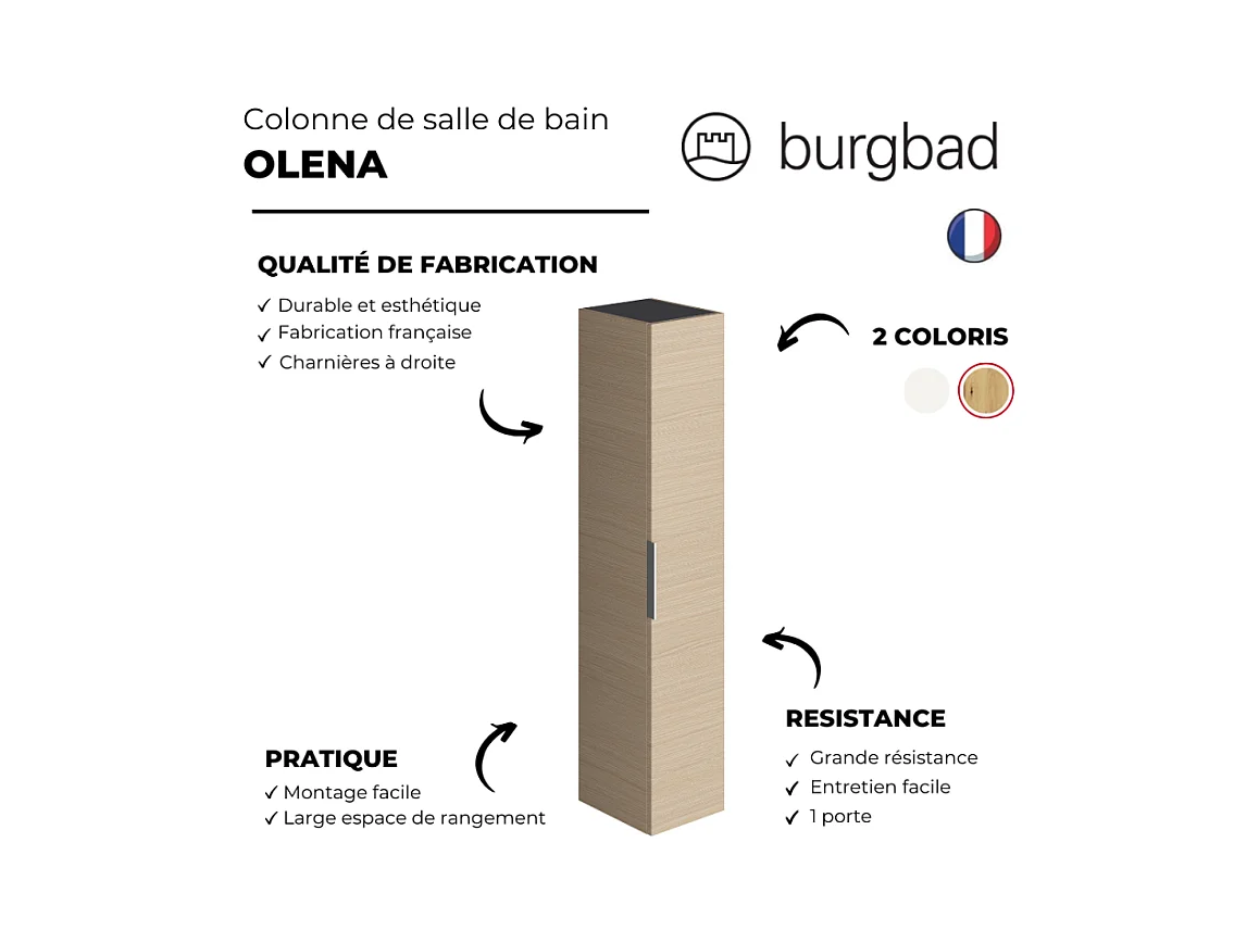Colonne de salle de bain BURGBAD Olena 1 porte chêne clair