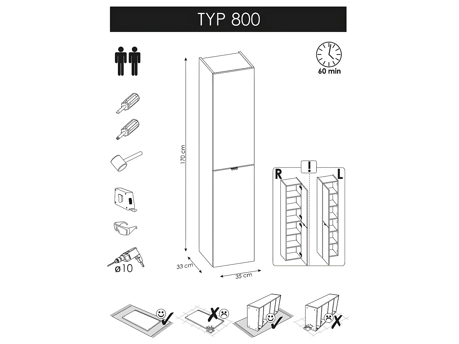 Colonne de salle de bain - Chêne artisanal doré et blanc brillant - L35-H170-P33 - ELENA
