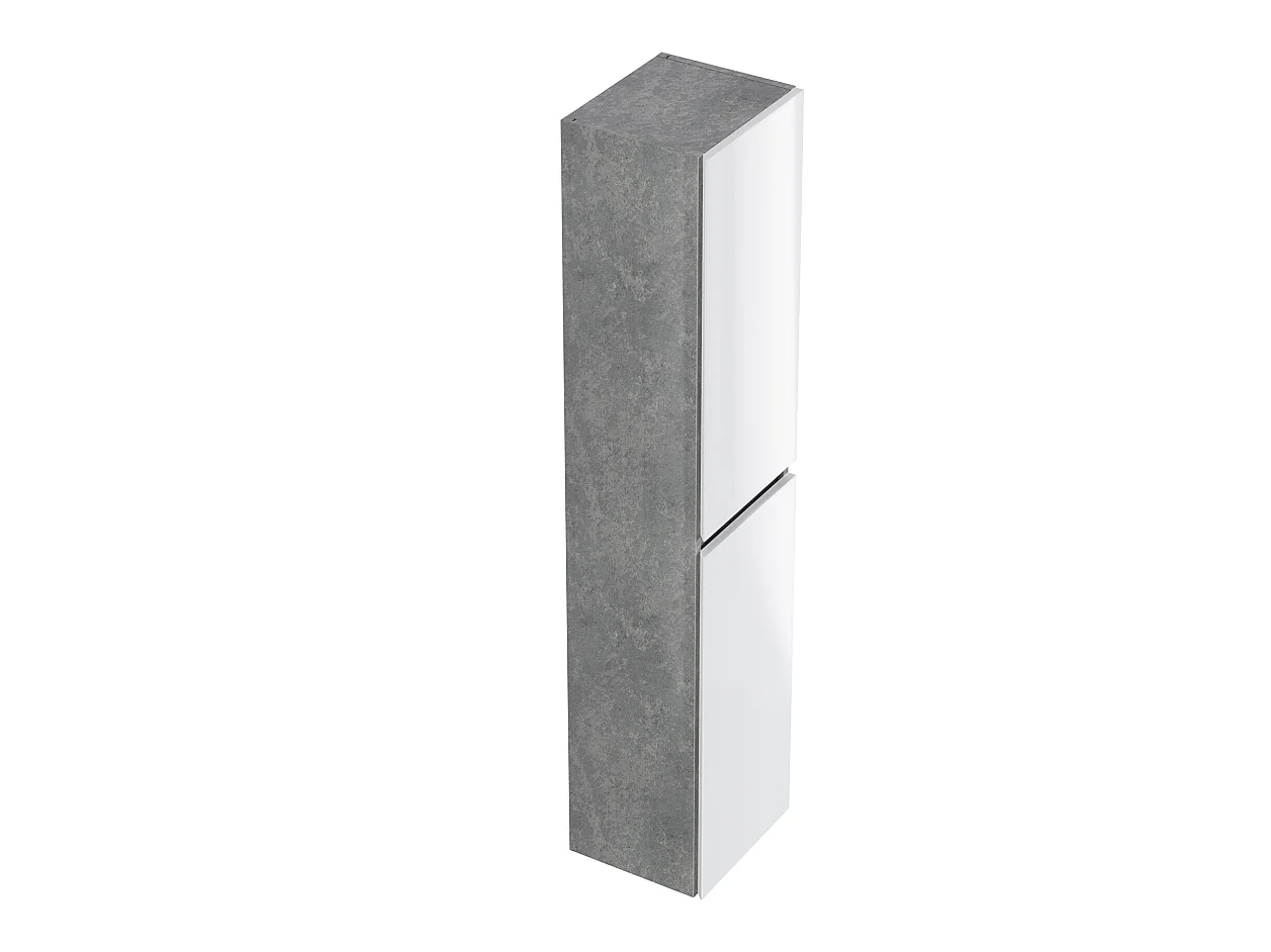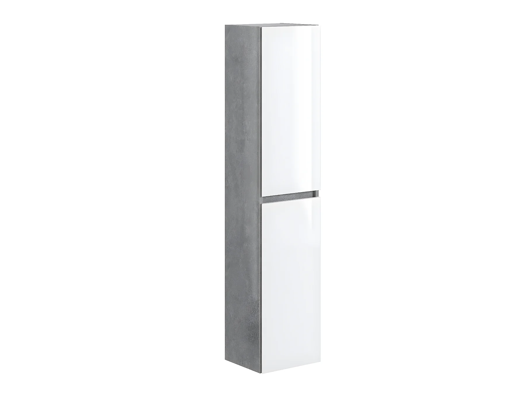 Colonne de salle de bain en mélamine coloris béton / blanc - Longueur 30 x profondeur 27 x Hauteur 140 cm