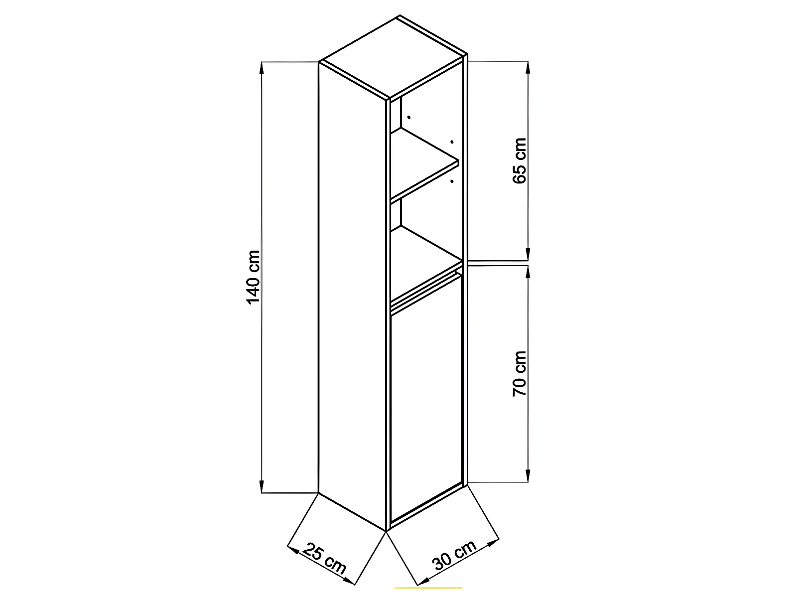 Colonne de salle de bain en mélamine coloris chêne mat / blanc - Longueur 30 x profondeur 25 x Hauteur 140 cm
