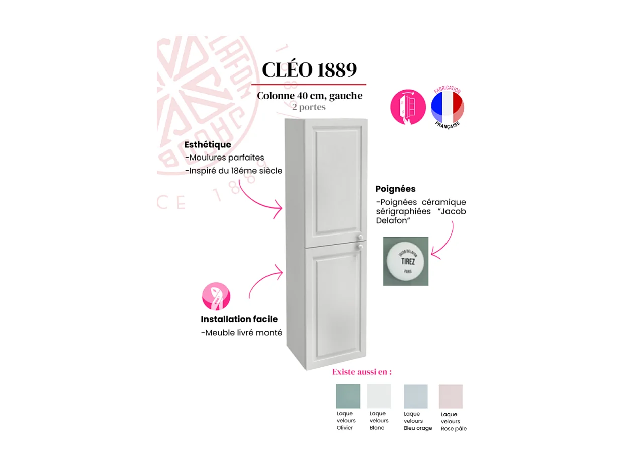 Colonne de salle de bain JACOB DELAFON Cléo 1889 blanc velours version gauche
