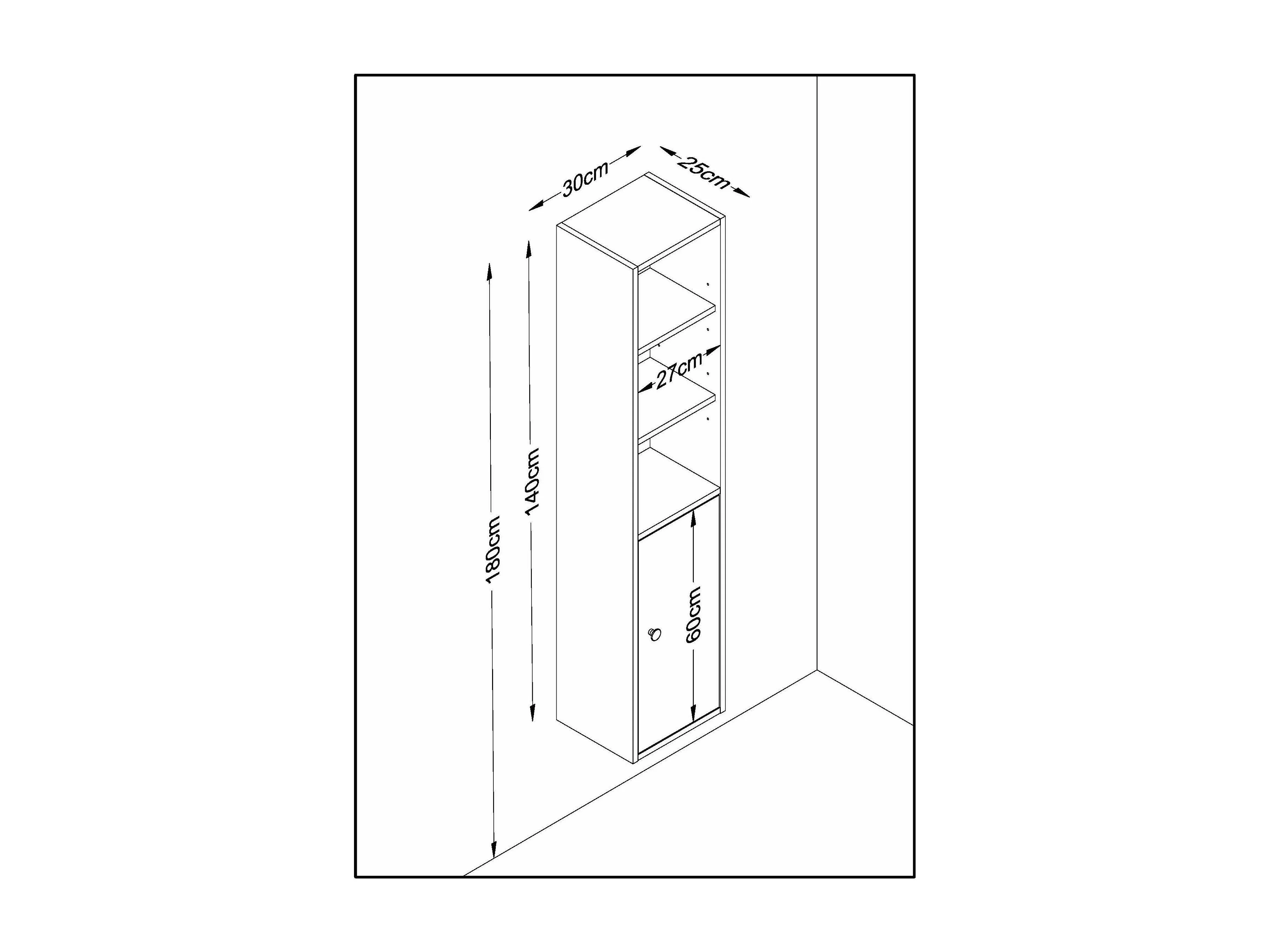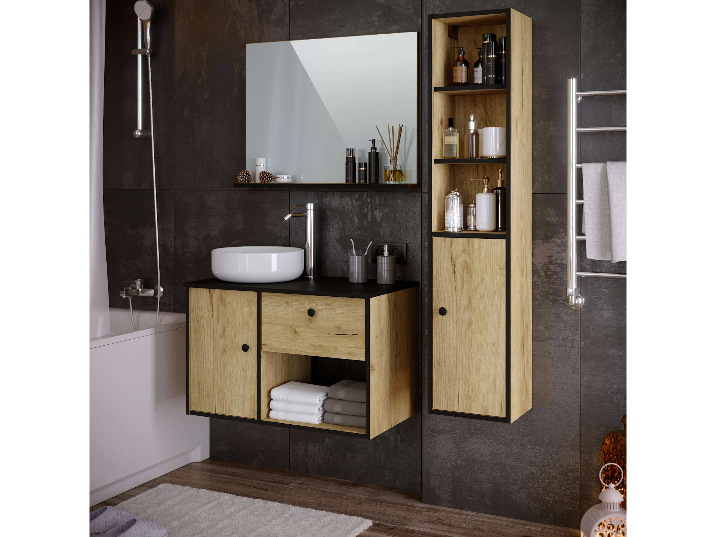 Colonne de salle de bain LARA 1 porte 140x30x25 cm noir et chêne T-BATH