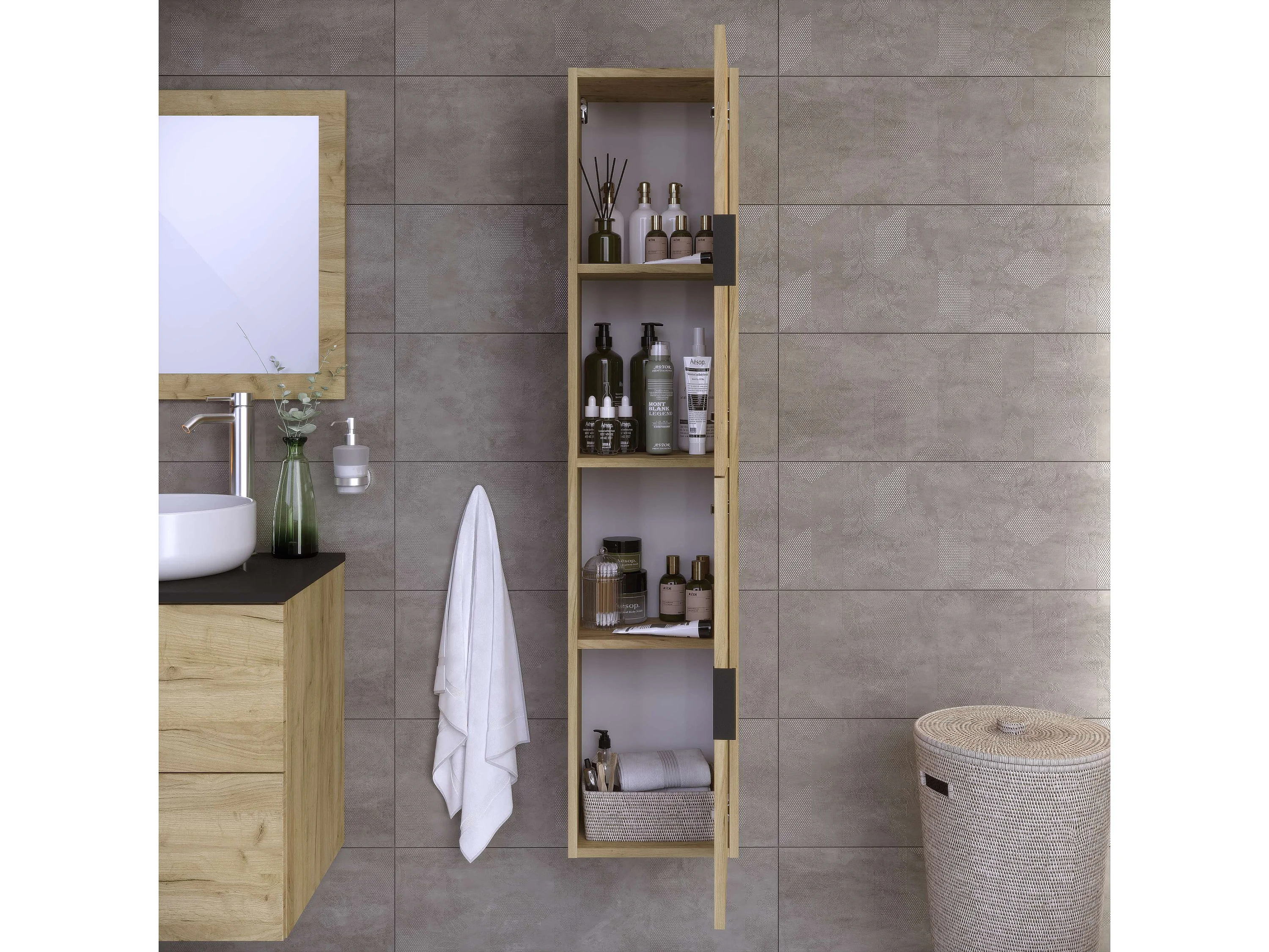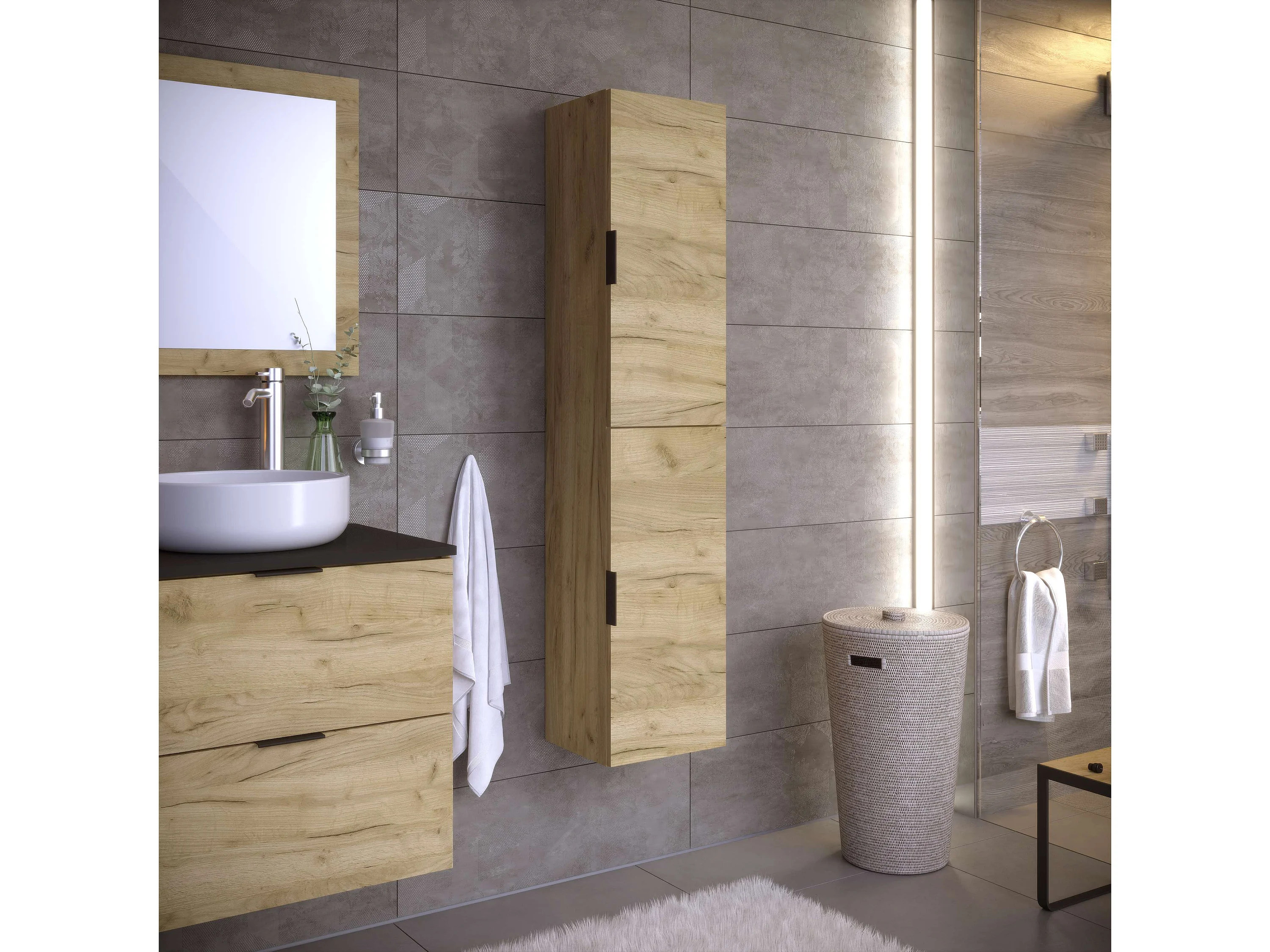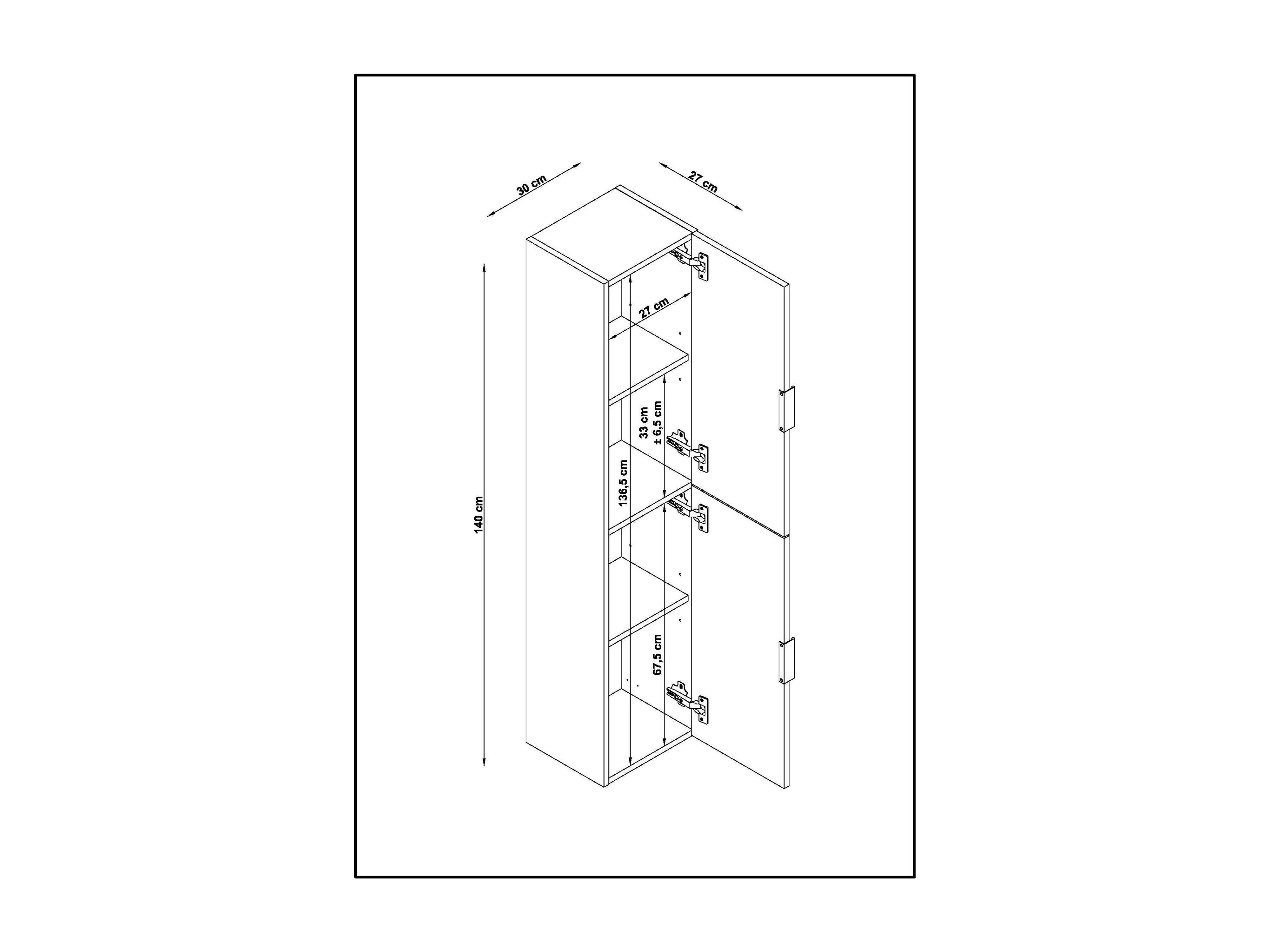 Colonne de salle de bain LYO 2 portes 140x30x27 cm chêne T-BATH