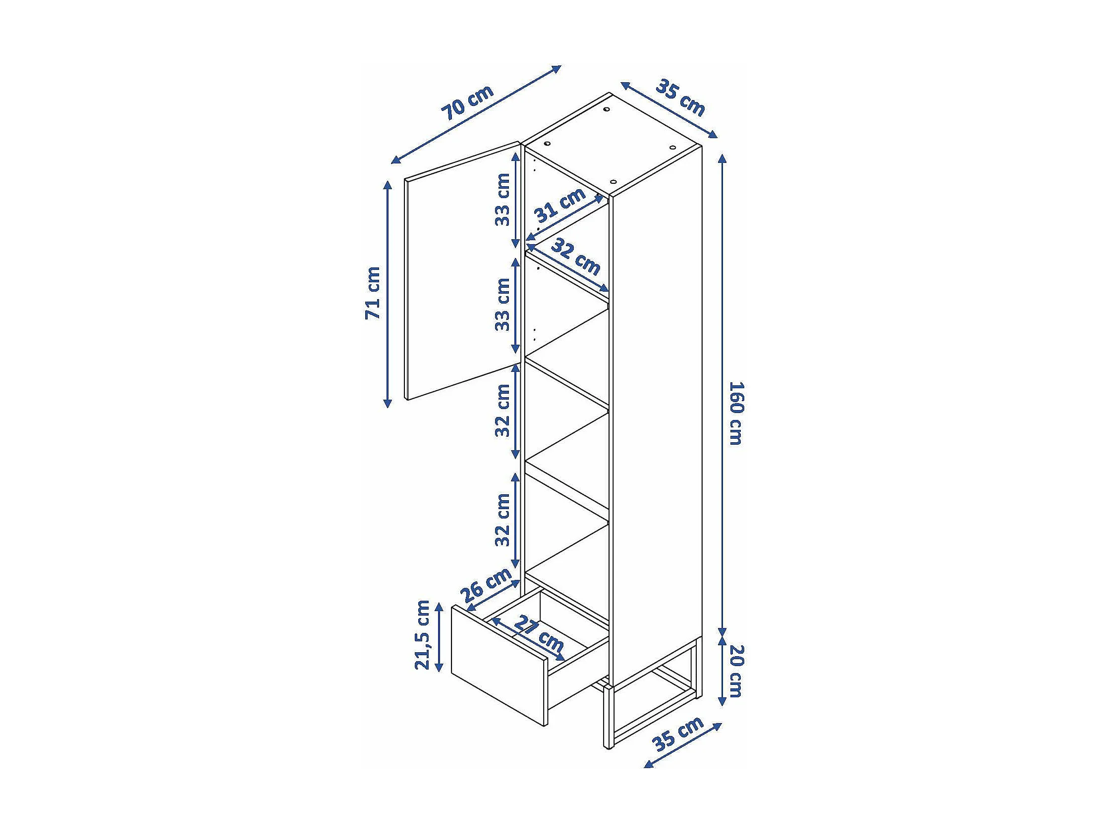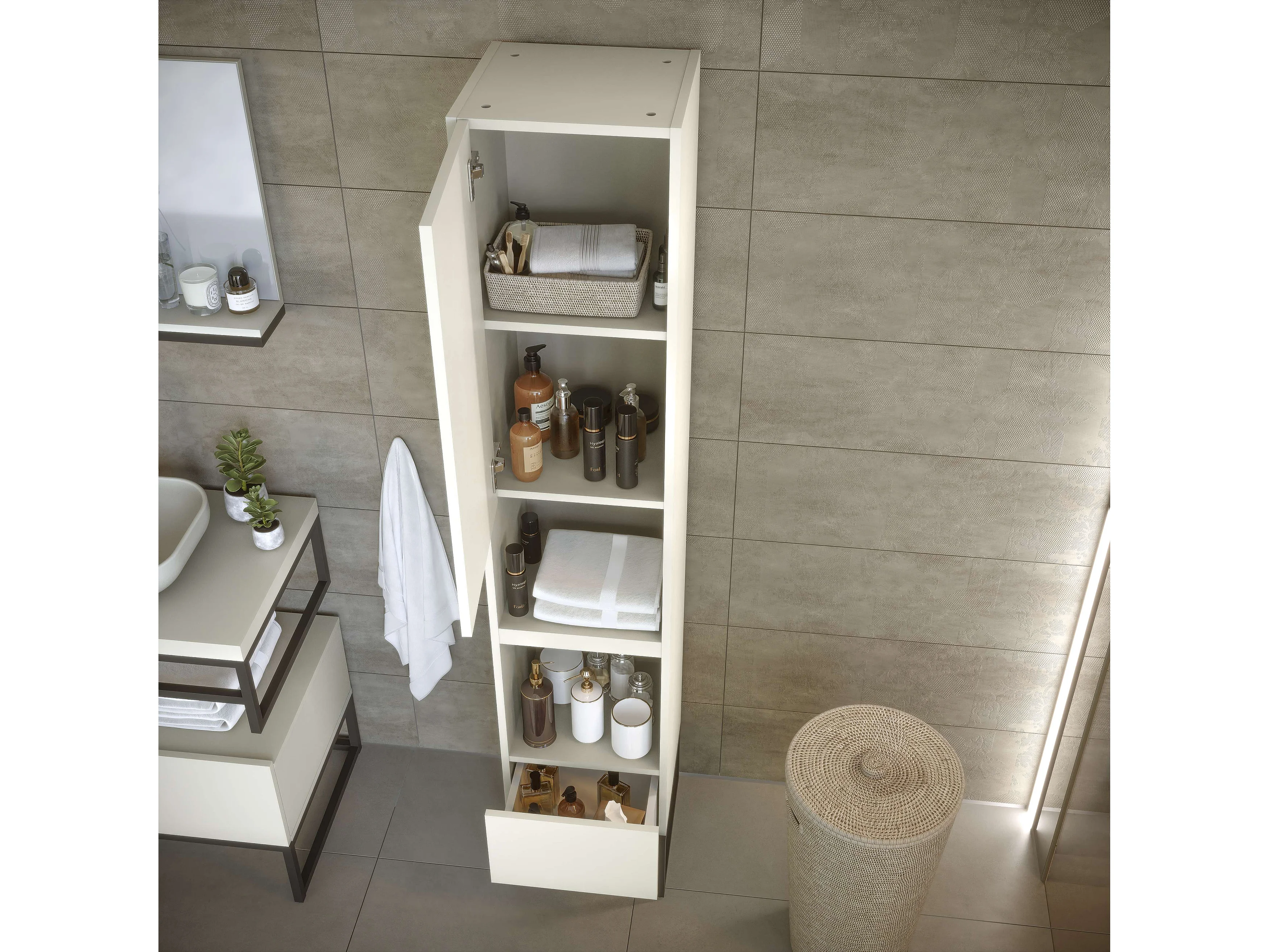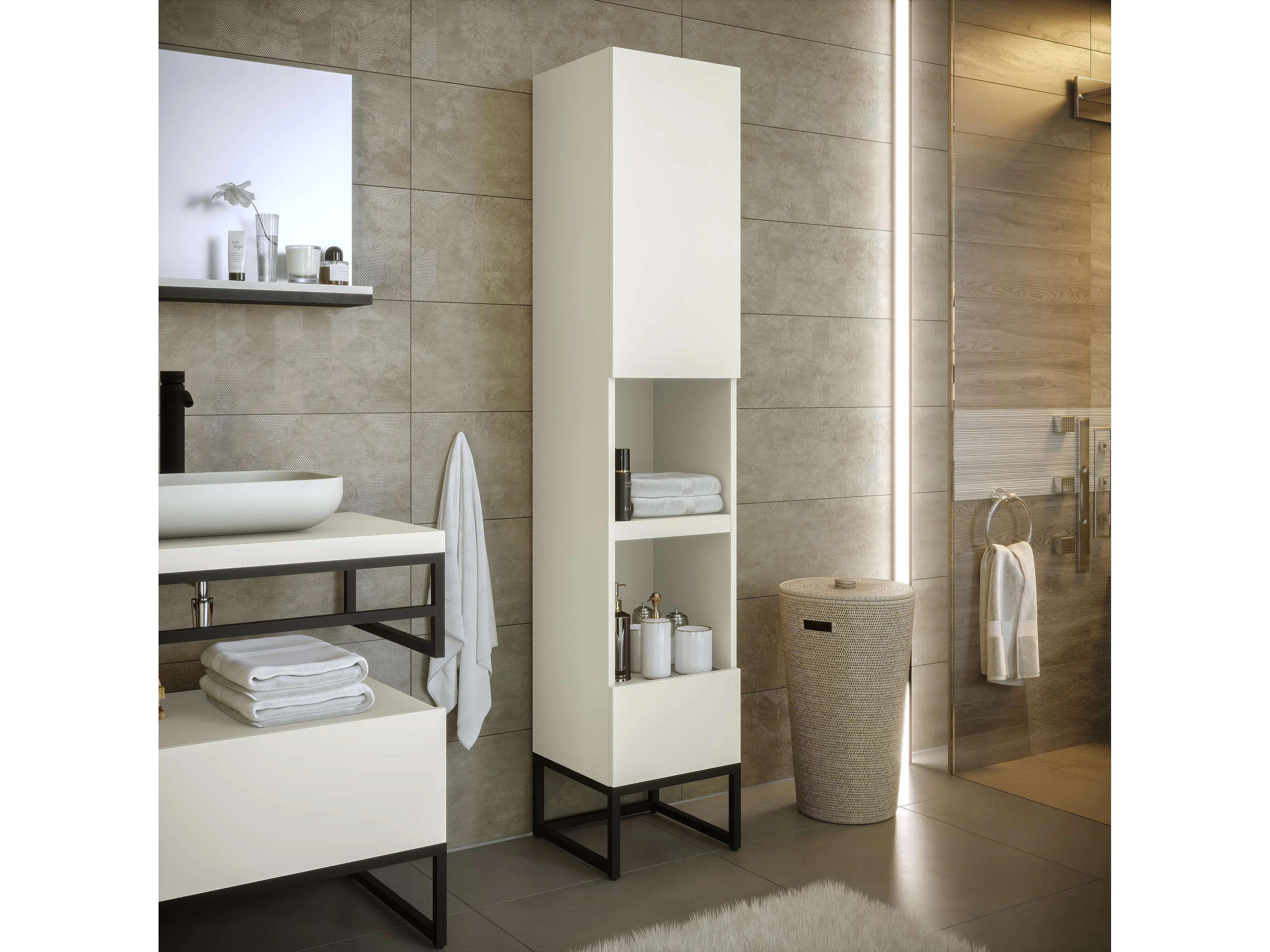 Colonne de salle de bain SPA 1 porte 1 tiroir 180x35x35 cm blanc T-BATH