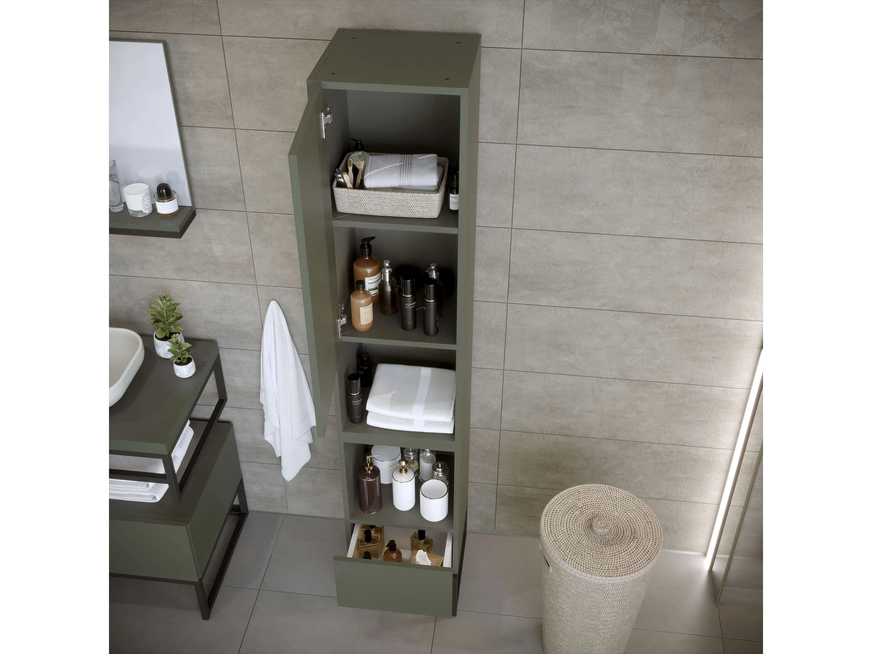 Colonne de salle de bain SPA 1 porte 1 tiroir 180x35x35 cm vert T-BATH