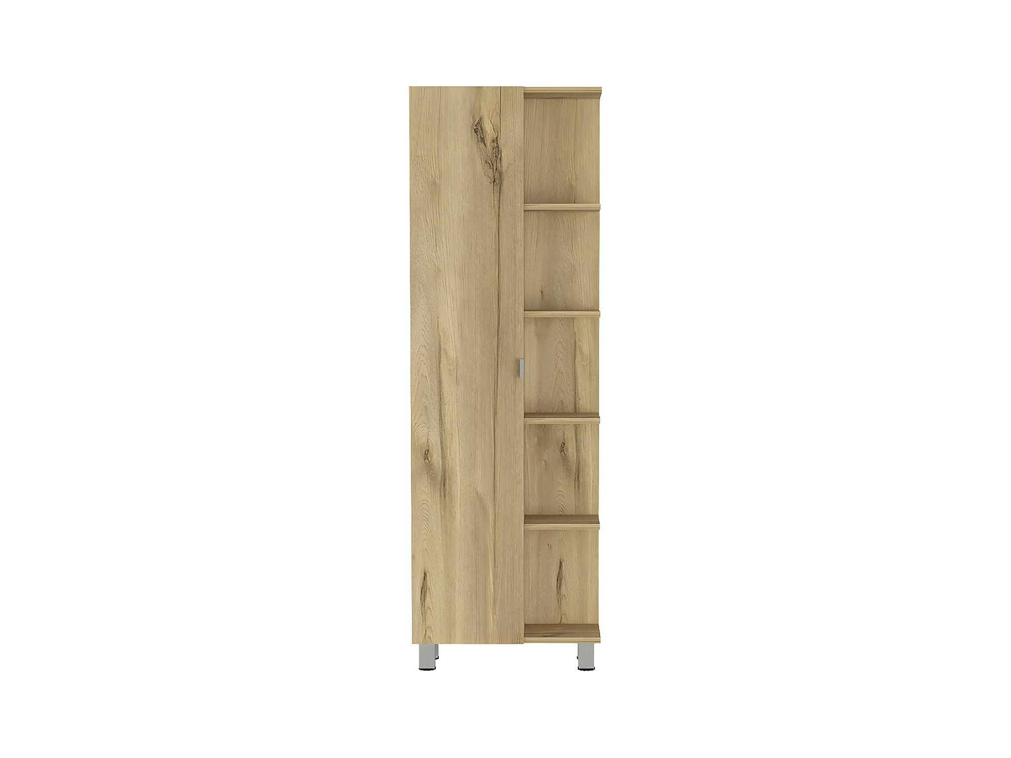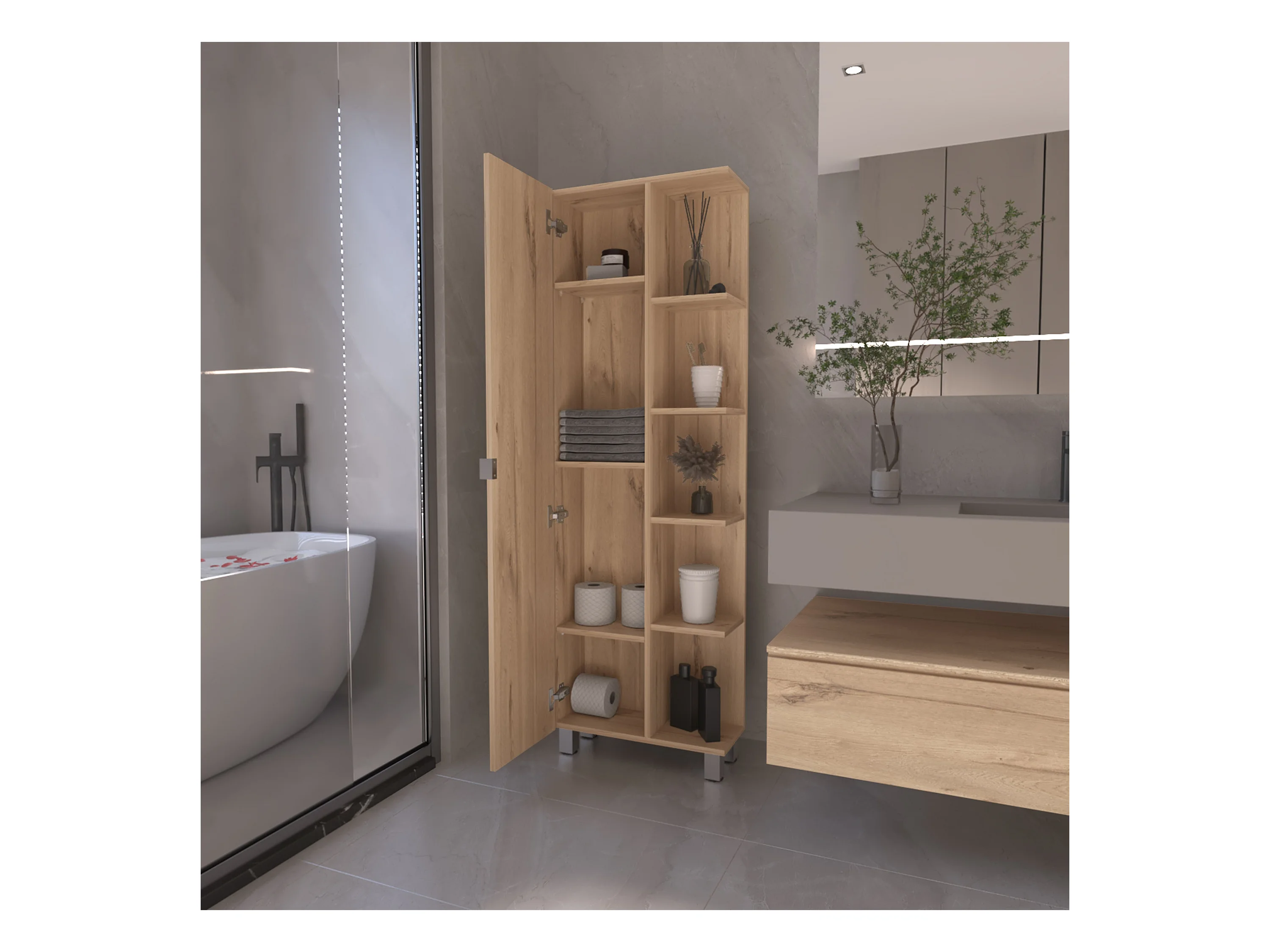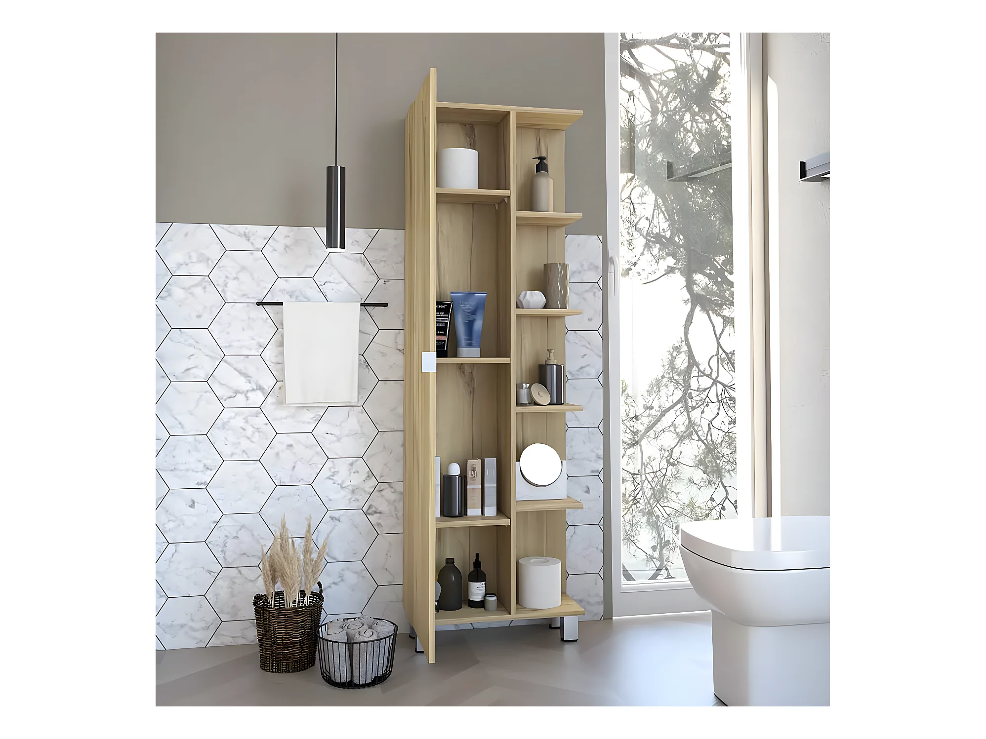 Colonne de salle de bain Uranus en mélamine, avec cinq étagères externes et quatre étagères internes , 158 cm X 51.18 cm X 21.46 cm , Gris / argenté