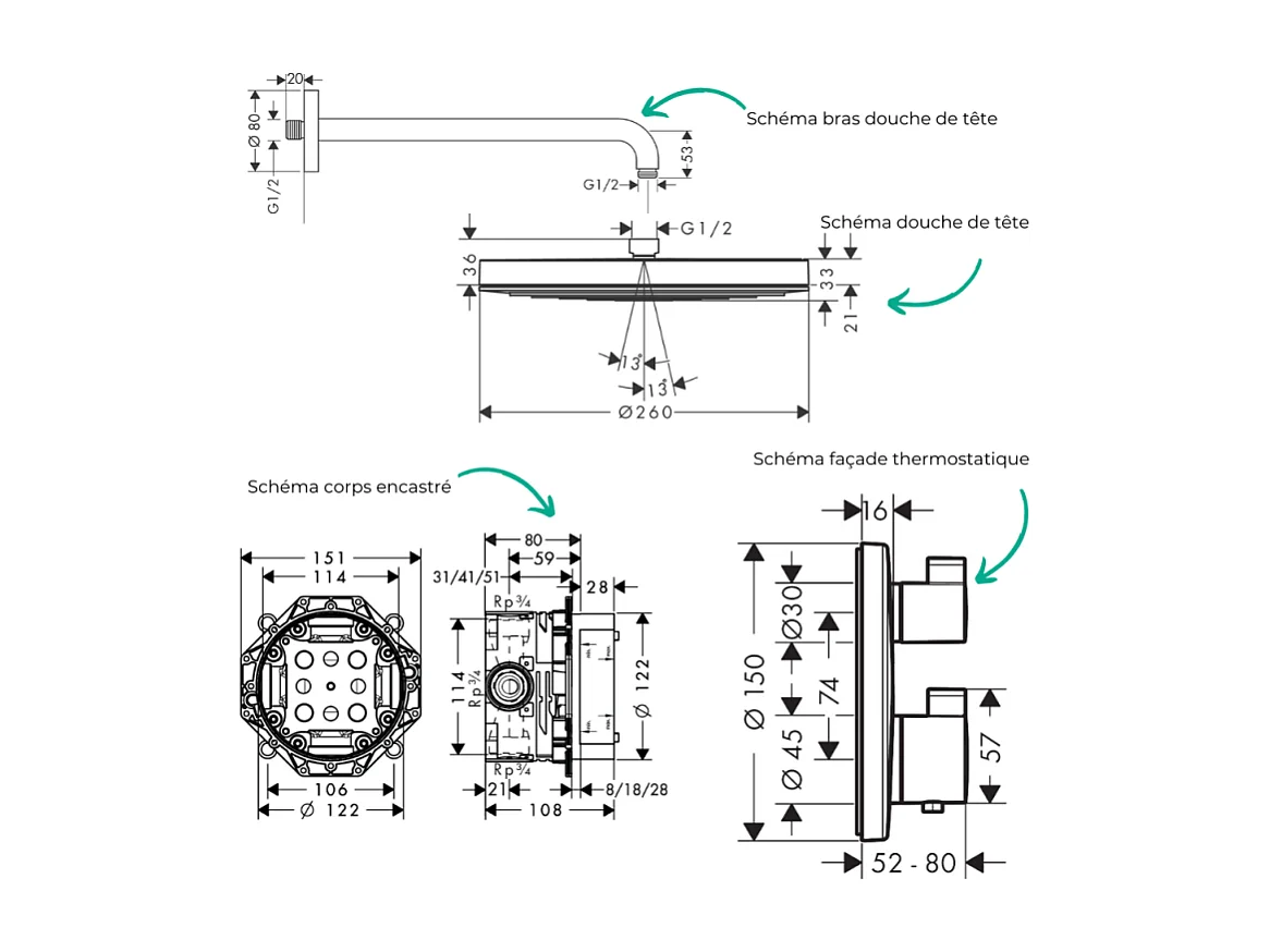 Colonne douche thermostatique HANSGROHE Ecostat S Douche de tête Pulsify S Flexible Designflex Douchette Raindance Select S blanc