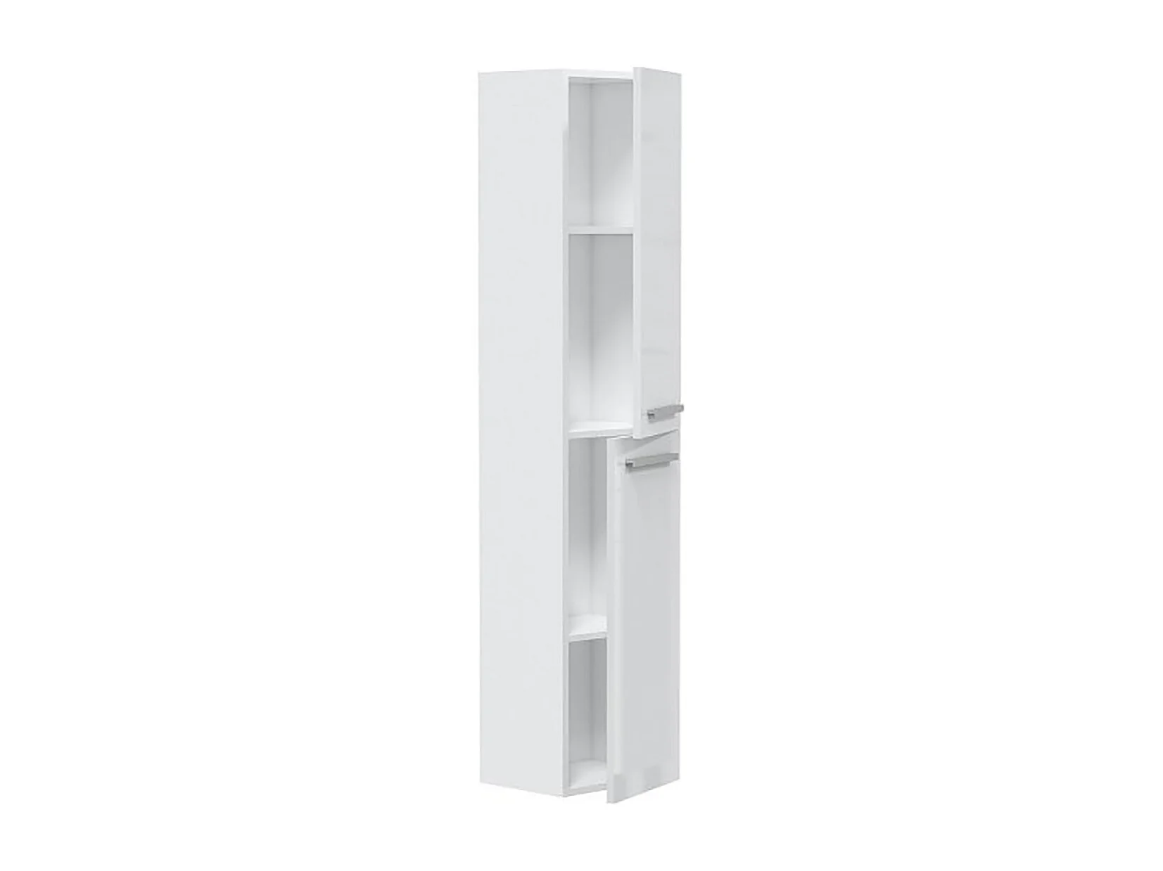 Colonne de salle de bain Dabado, Armoire colonne de salle de bain avec 2 portes, Armoire murale suspendue avec 2 étagères, 30x25h150 cm, Blanc brillant