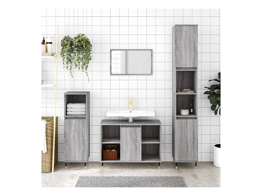 Armoire salle de bain sonoma gris 30x30x100 cm FR47800