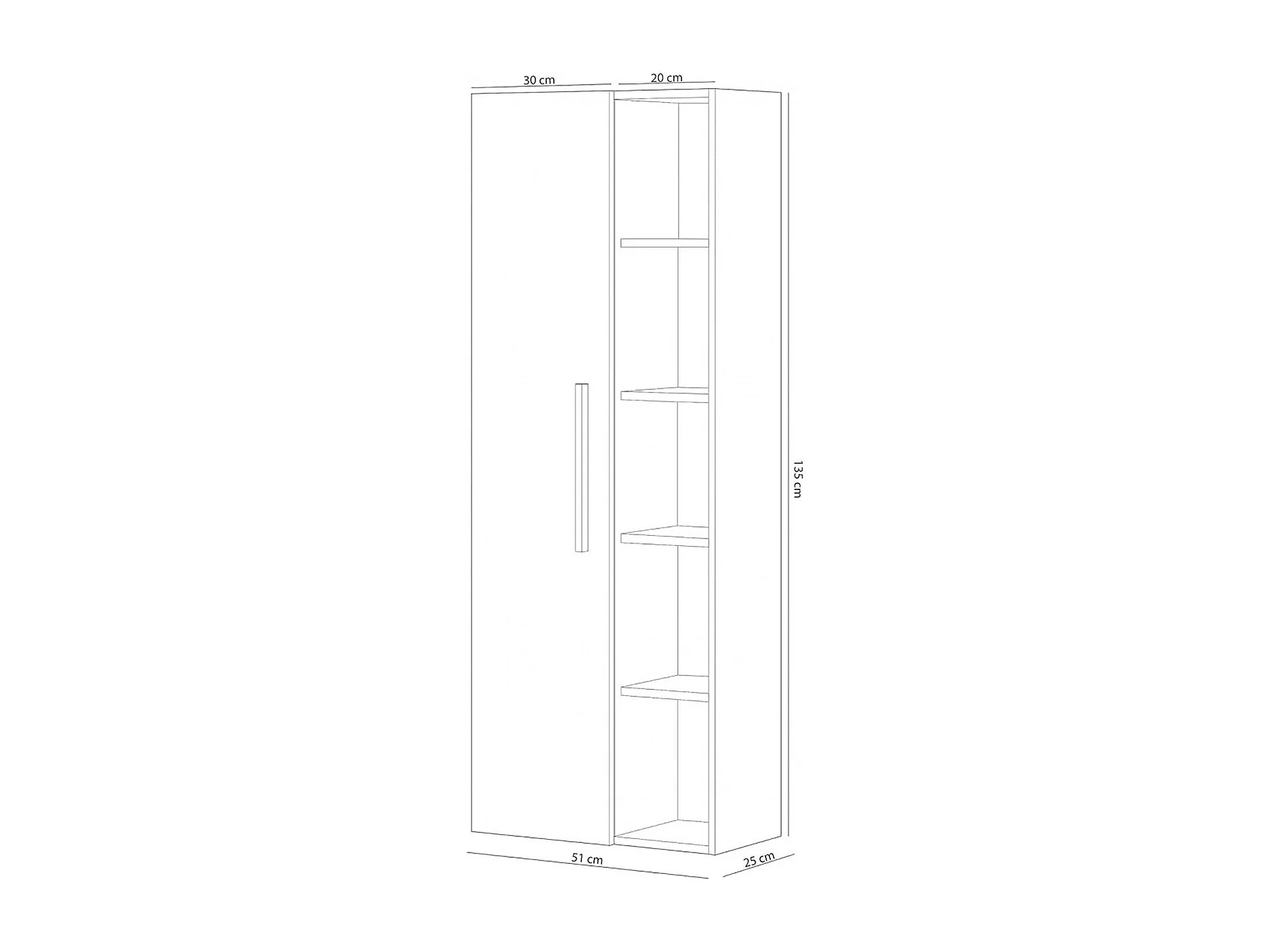 Colonne salle de bain Suspendue avec 1 porte coloris Alaska chêne à nœuds - Hauteur 135 x Longueur 51 x Profondeur 25 cm
