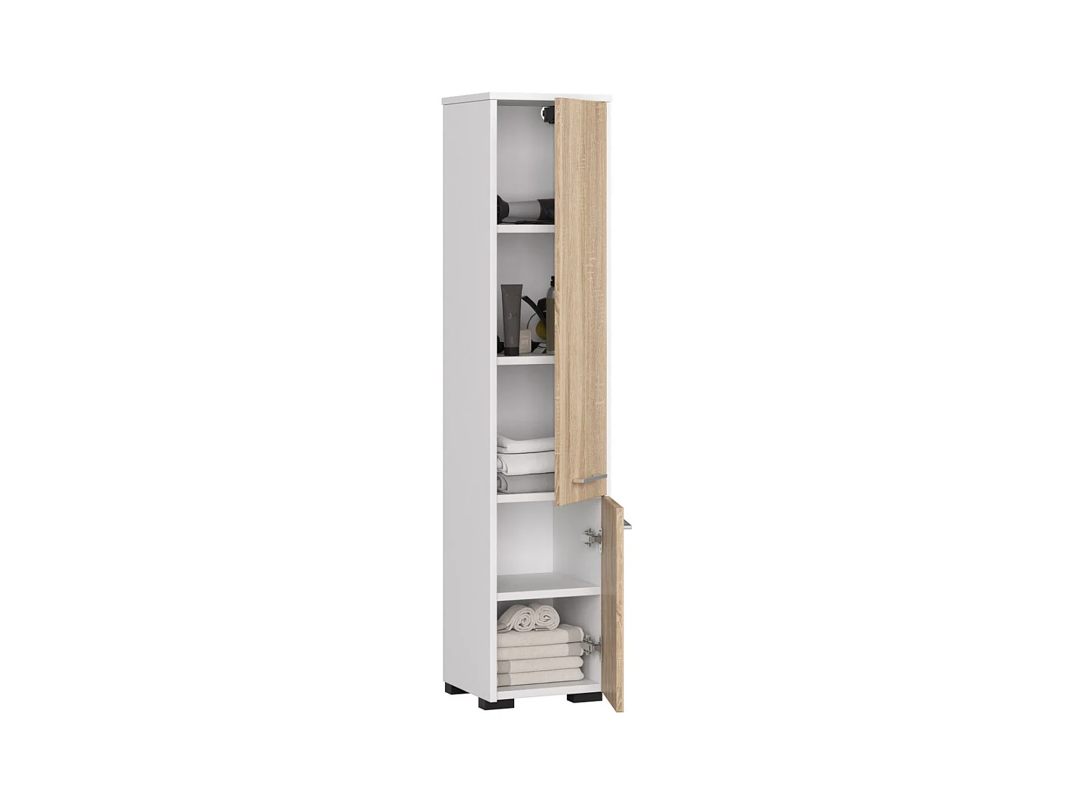 Colonne salle de bain AKORD BETI Chêne Artisan 32 cm 2 portes façade Blanche 4 étagères 32x28x180 cm