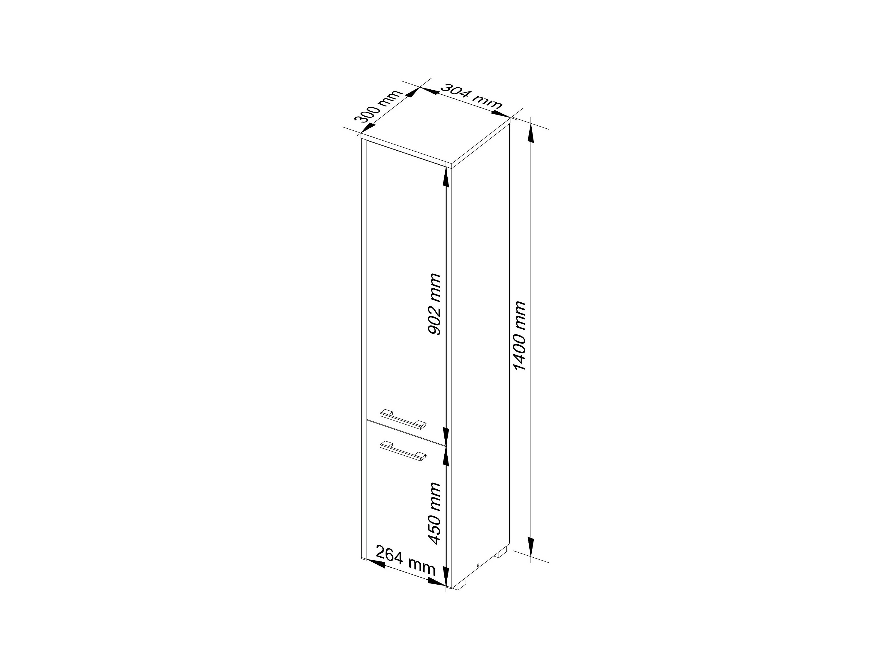 Colonne salle de bains AKORD FIN Blanche 30 cm 2 portes façade Chêne Sonoma 5 étagères 30x30x140 cm