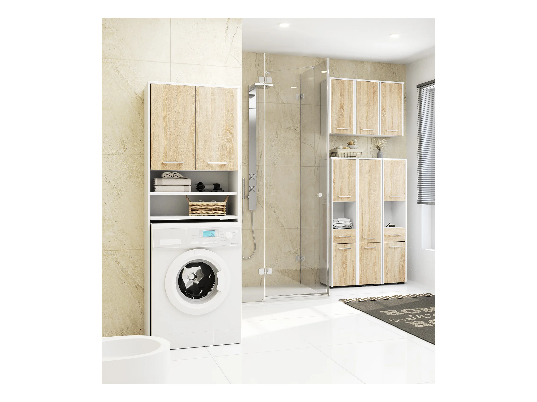 POLA - Armoire de Salle de Bain au-dessus du Lave-linge - Beige