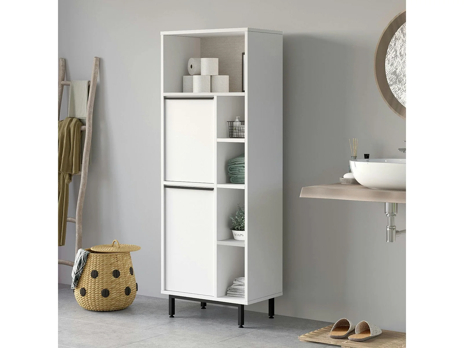 Colonne salle de bains blanche 2 portes 5 niches JENA