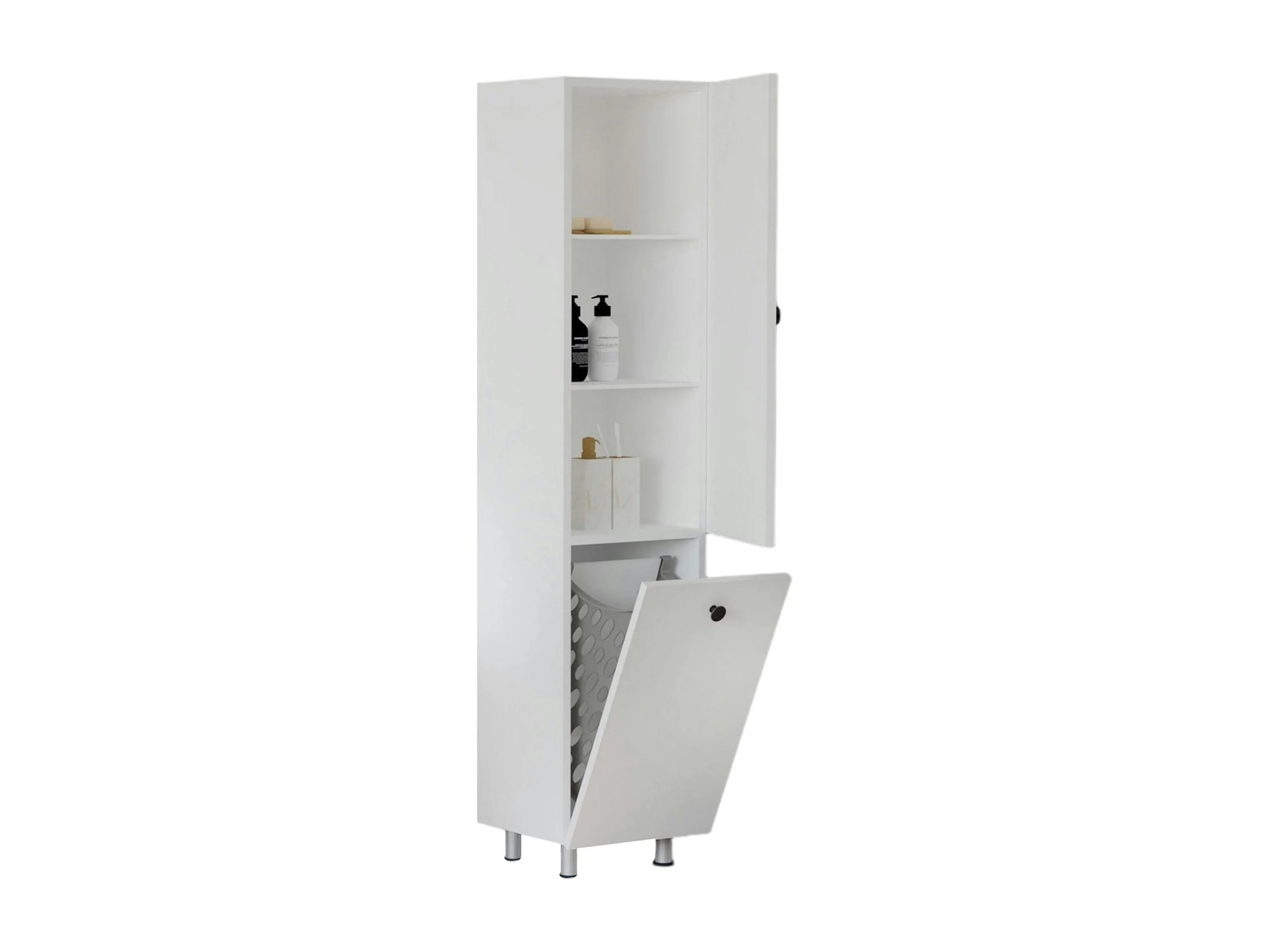 Colonne salle de bains blanche, porte & panier linge MARFA