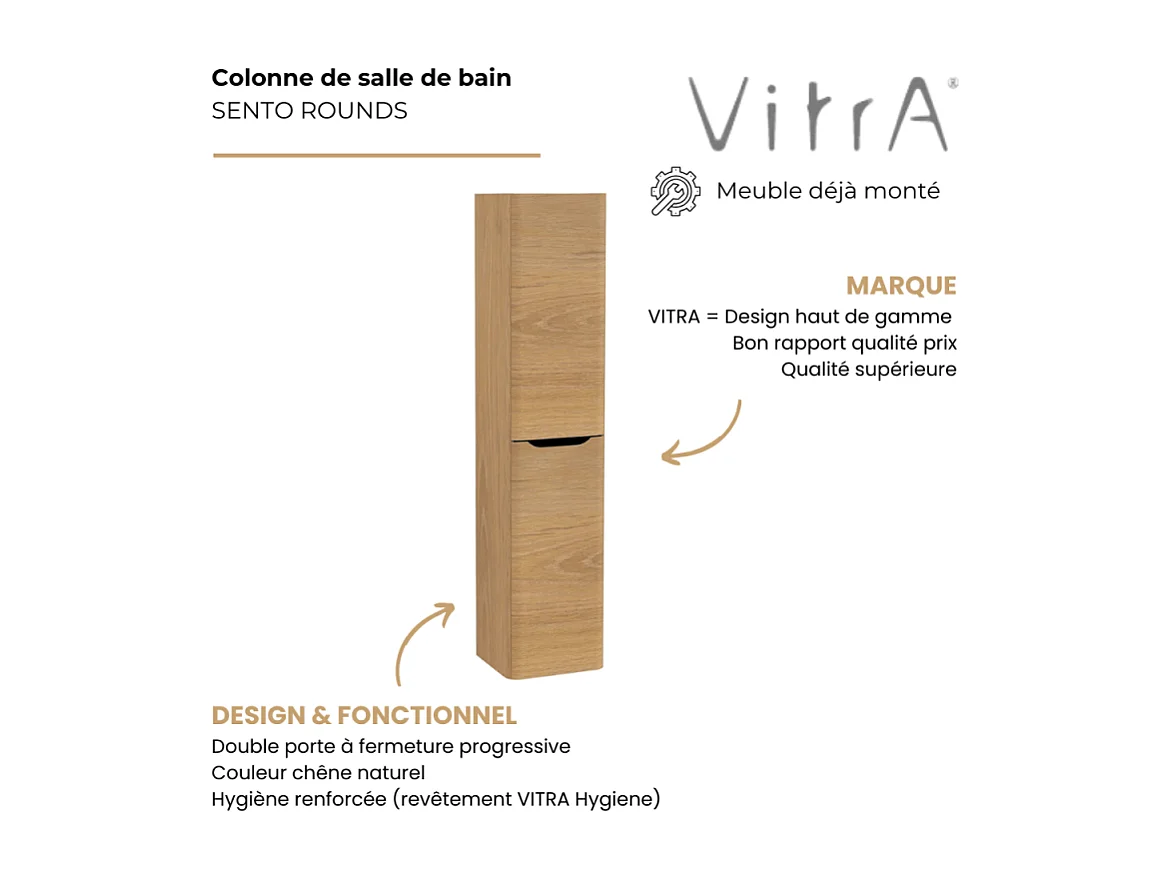 Colonne VITRA Sento Round haute 2 portes version droite Chêne naturel doré