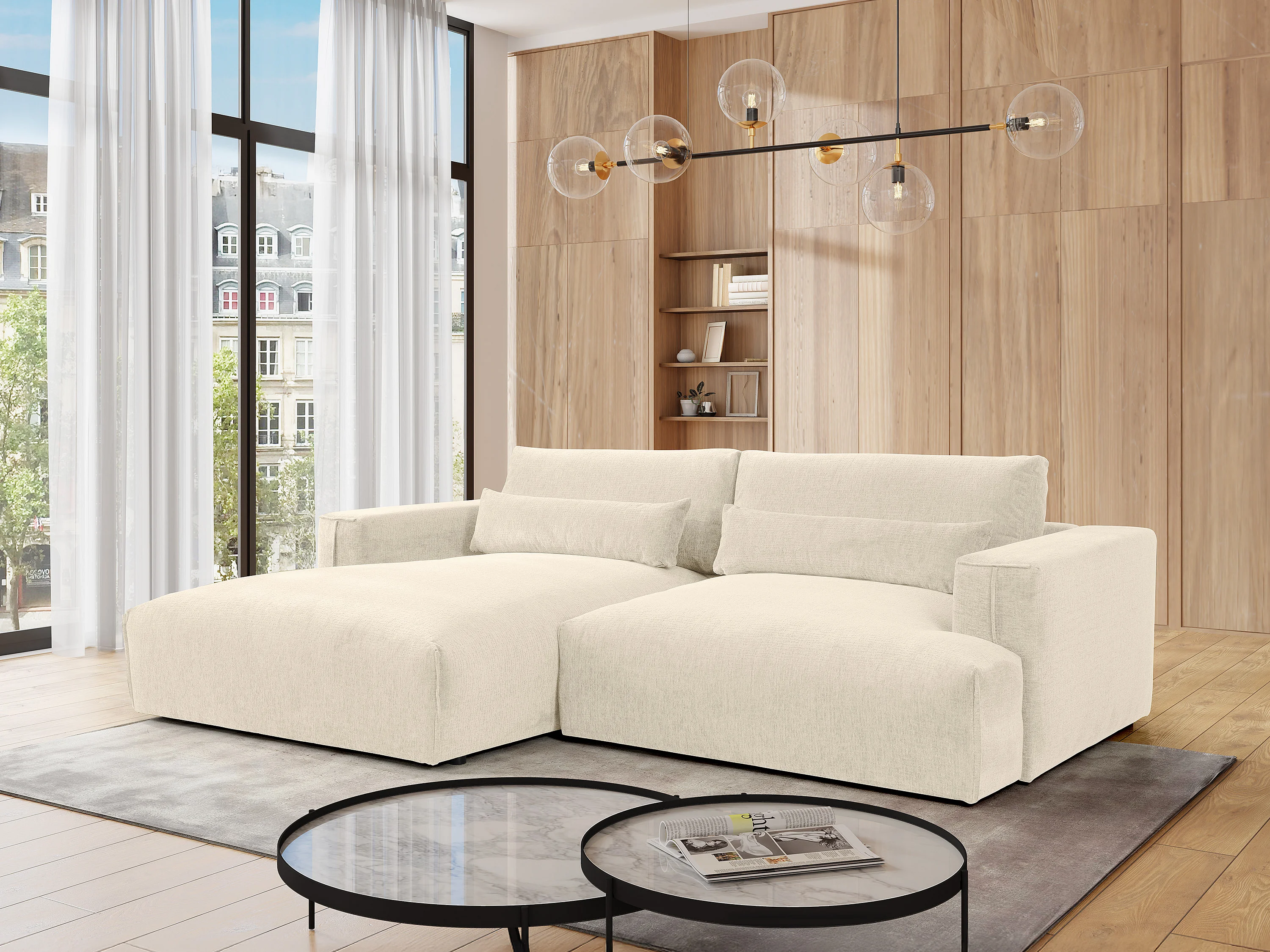 Canapé d'angle gauche en tissu chenille beige COLYSIA