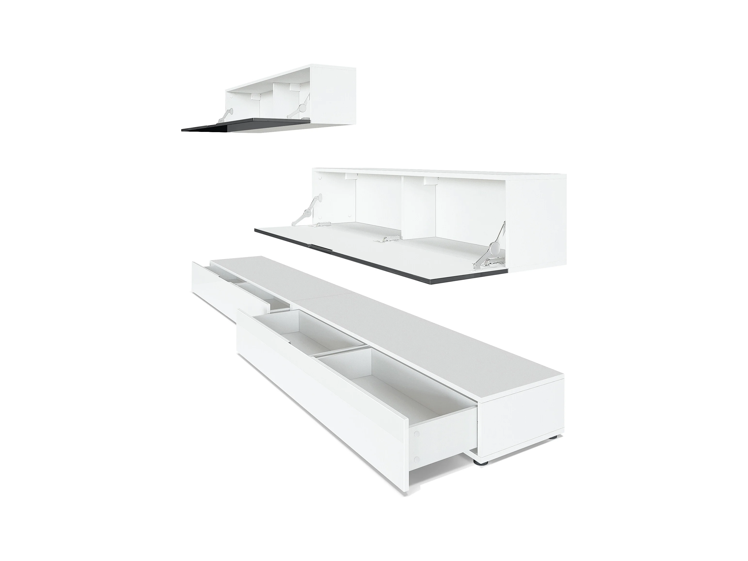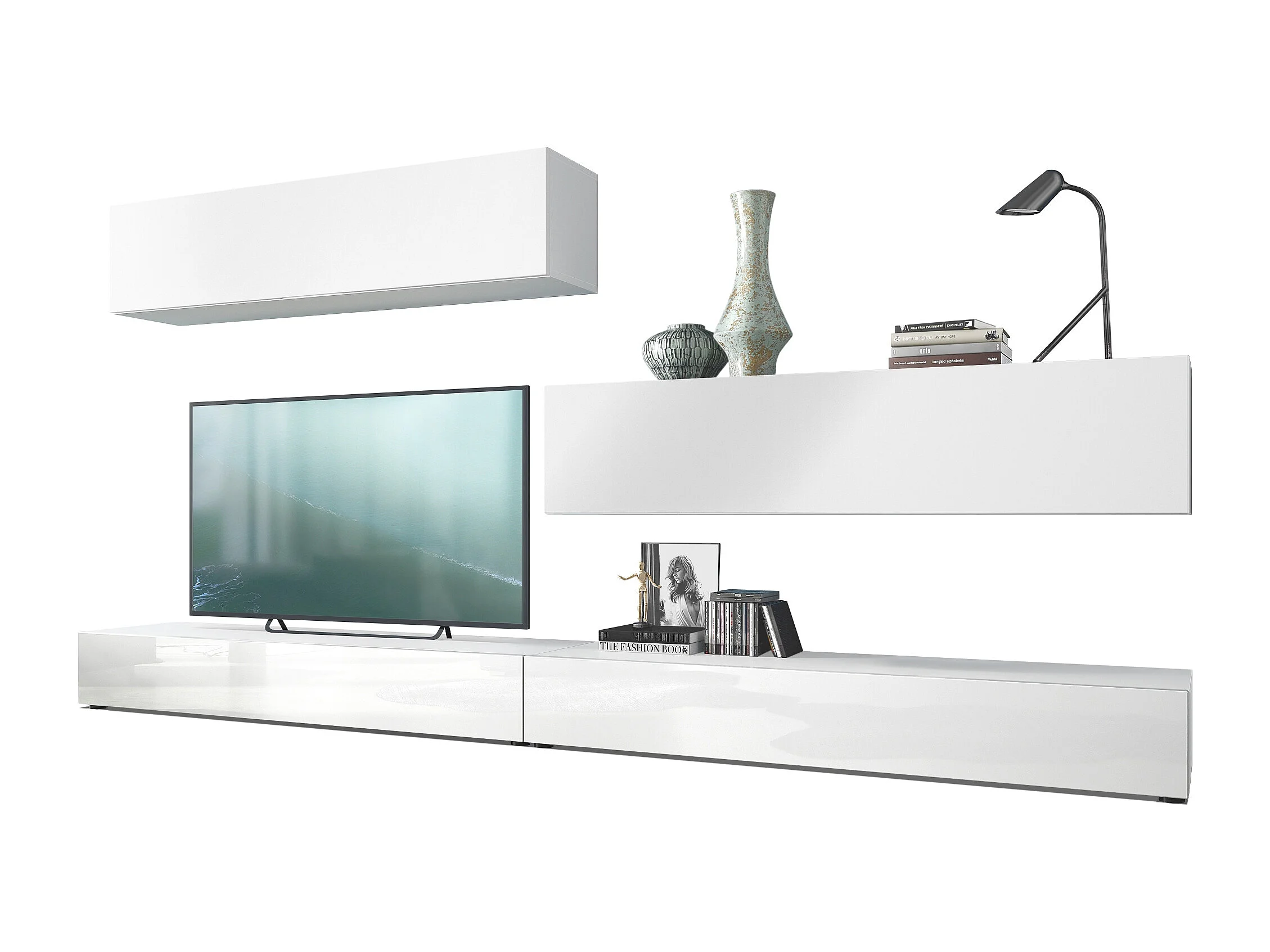 Combinaison murale Armoire Nublo, Corps en Blanc mat / Façades en Blanc haute brillance et Blanc mat