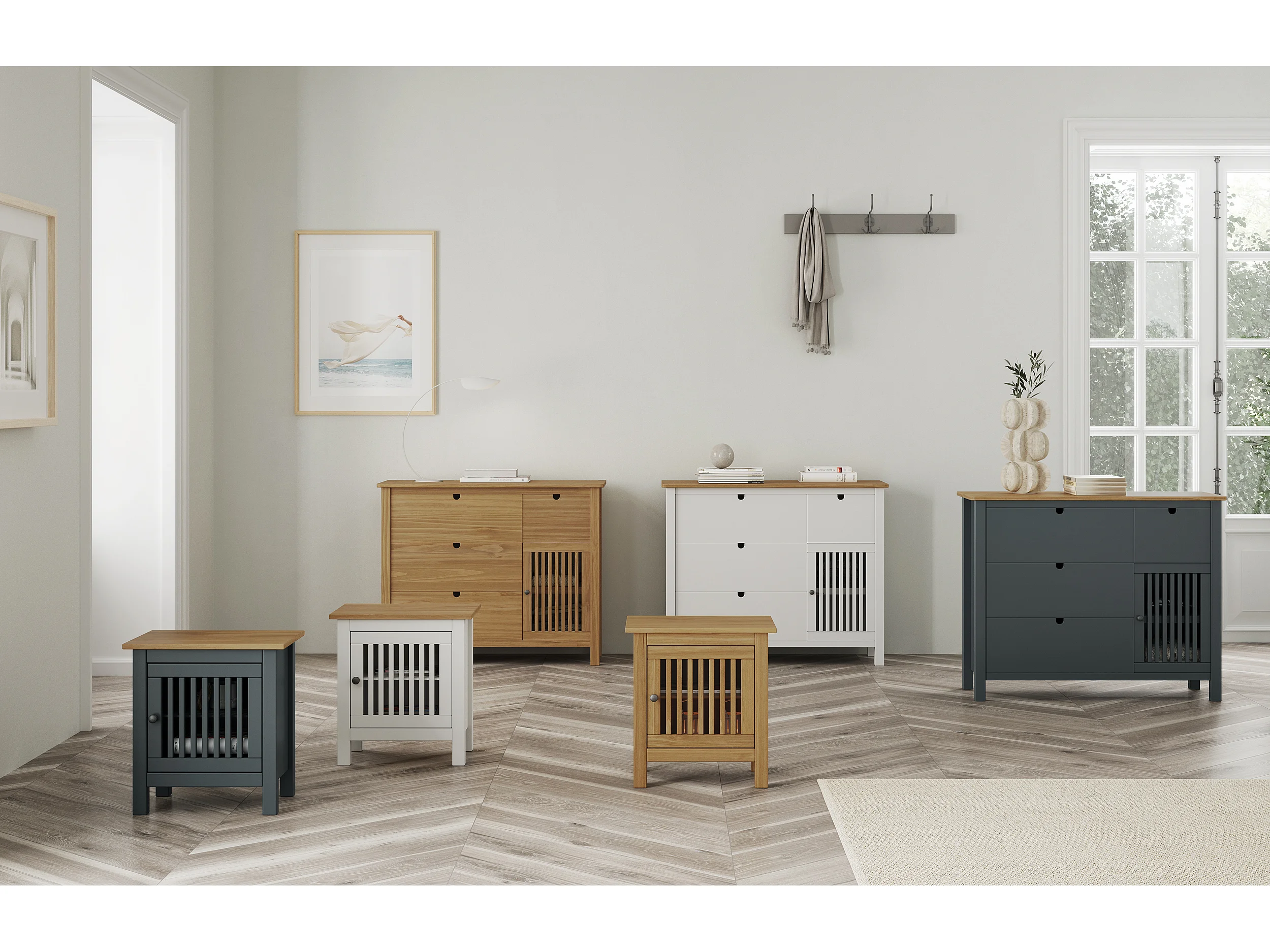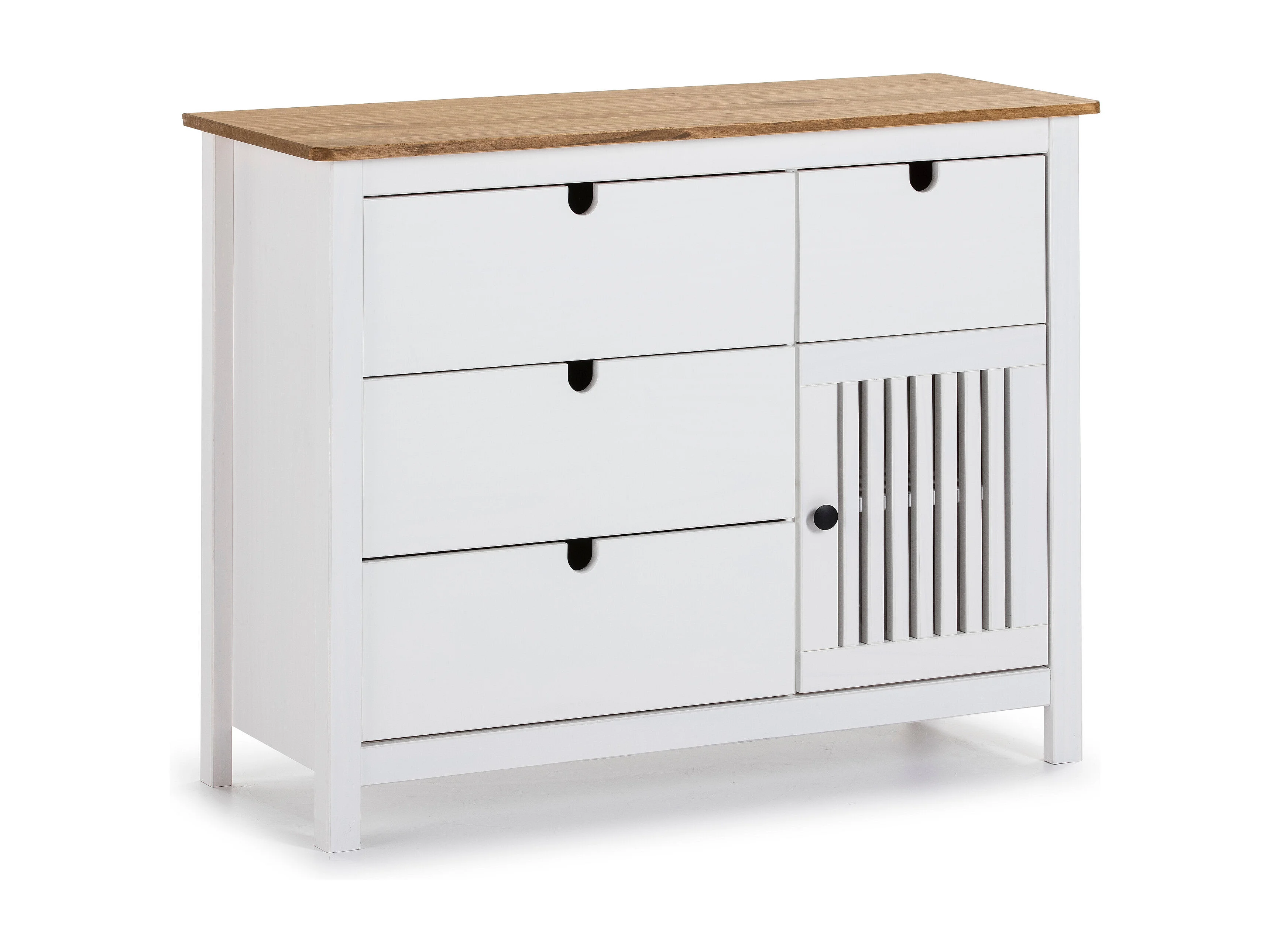 Commode 1 porte 4 tiroirs en pin massif blanc 100 cm - Fabia