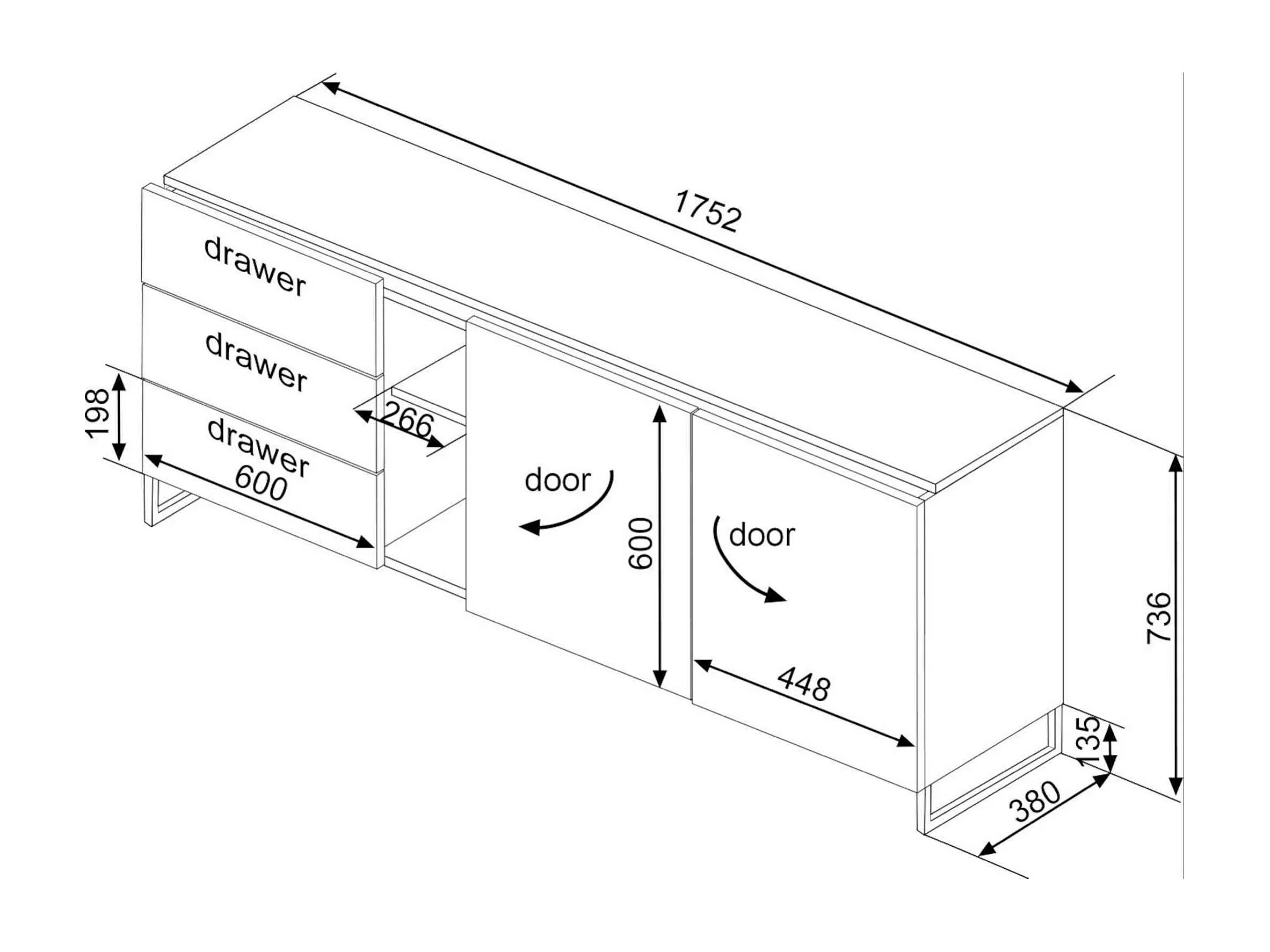 Commode 2 portes 3 tiroirs avec niches de rangement en bois imitation chêne - CO9037