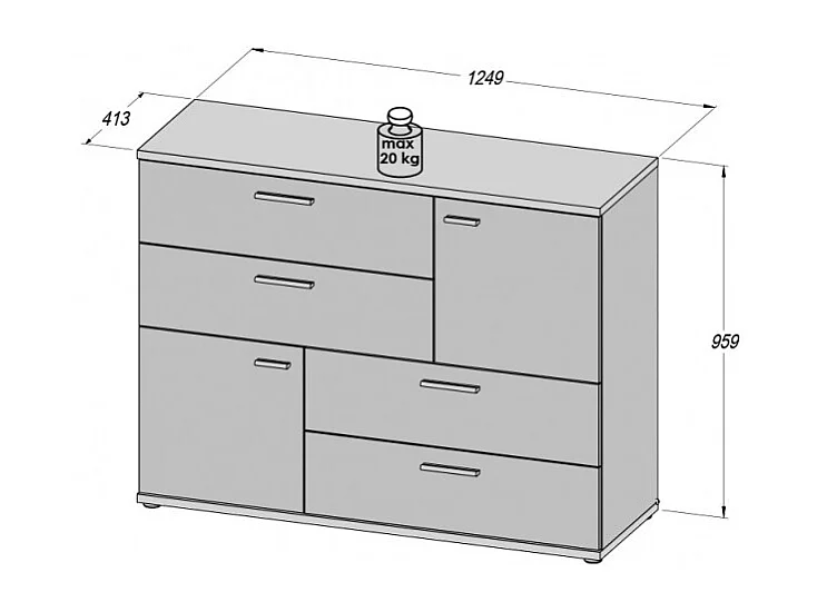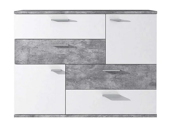 Commode 2 portes 4 tiroirs blanc décor béton - DEST