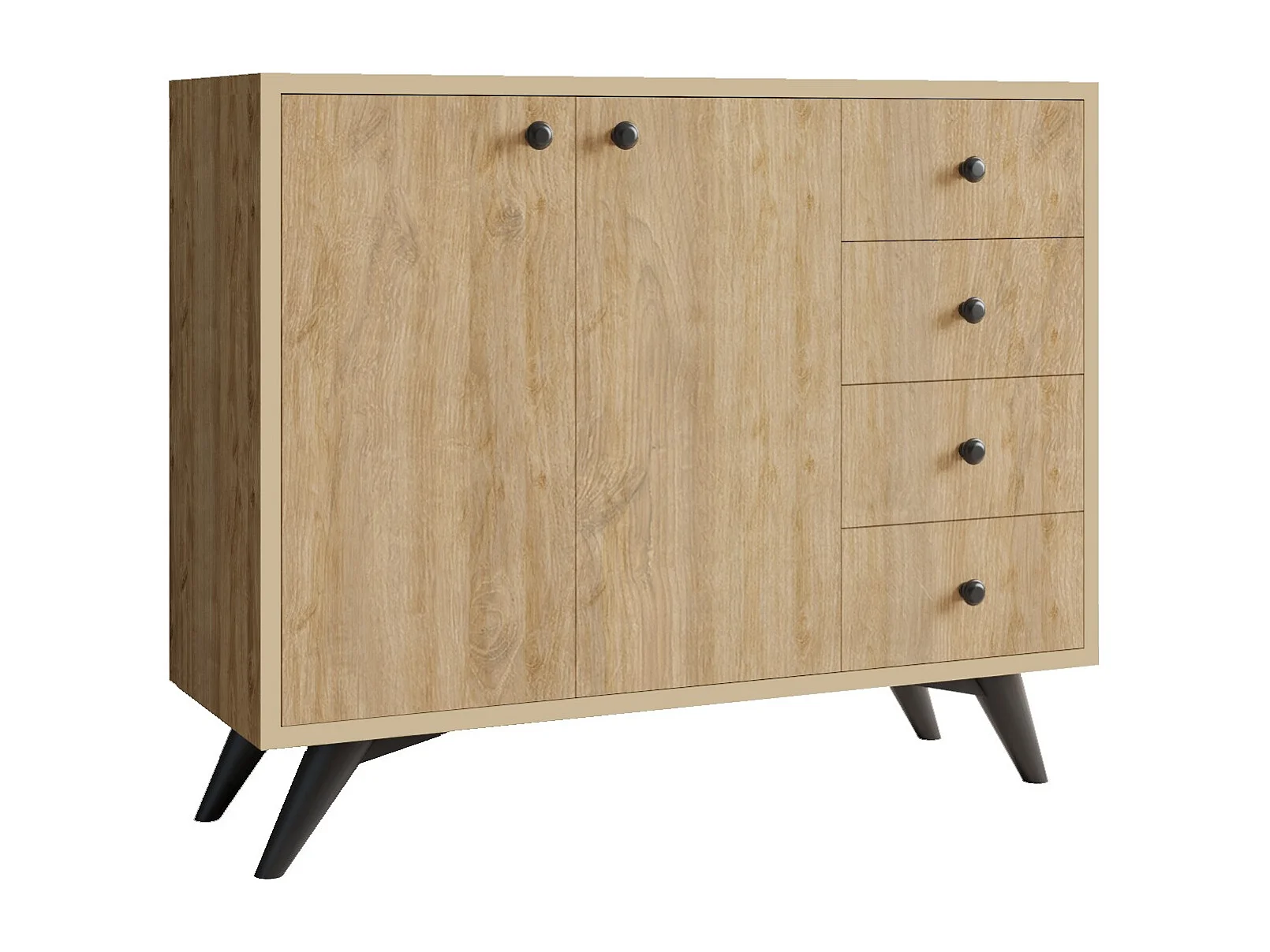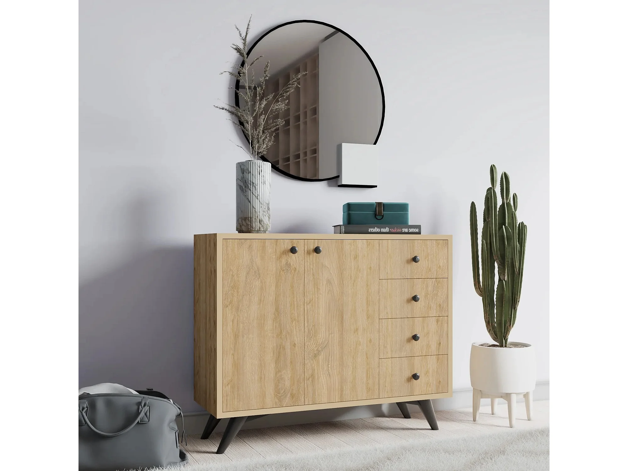 Commode 2 portes 4 tiroirs chêne clair 100cm