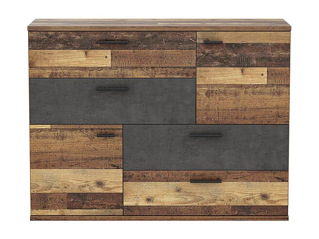 Commode 2 portes 4 tiroirs décor bois vintage béton gris - DEST