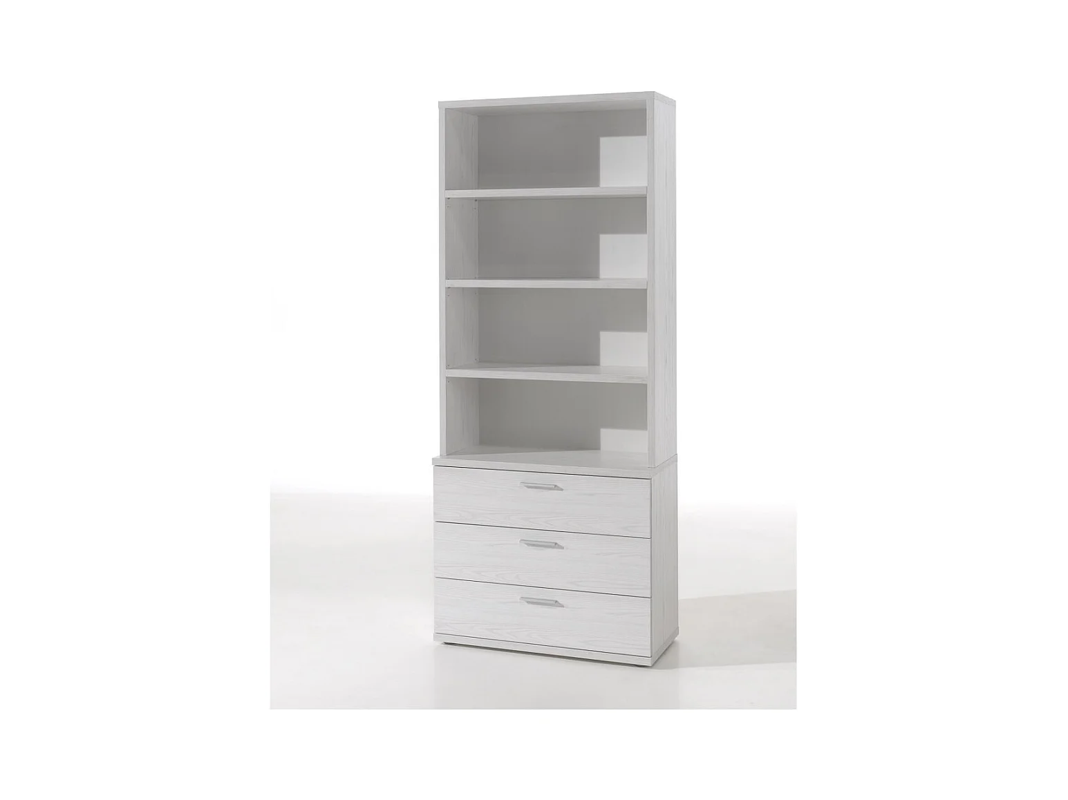 Commode OLVENA – 3 tiroirs avec module 3 étagères blanc effet bois