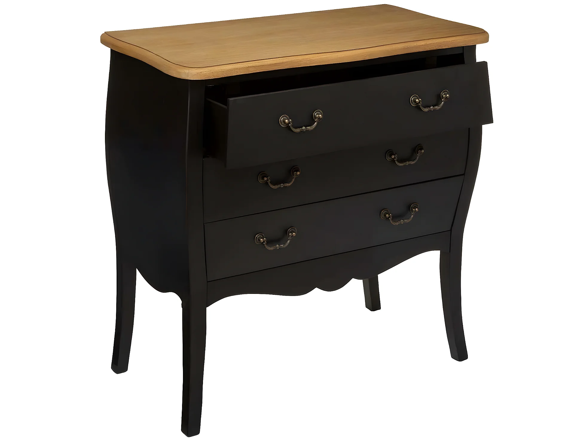 Commode 3 tiroirs coloris noir - Longueur 74 x Profondeur 37 x Hauteur 76 cm