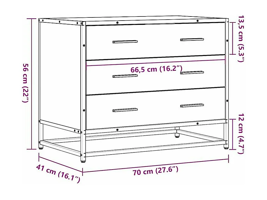 Commode 3 tiroirs Dovany L70xH56xP41 - Bois et métal-Couleur Marron fumé