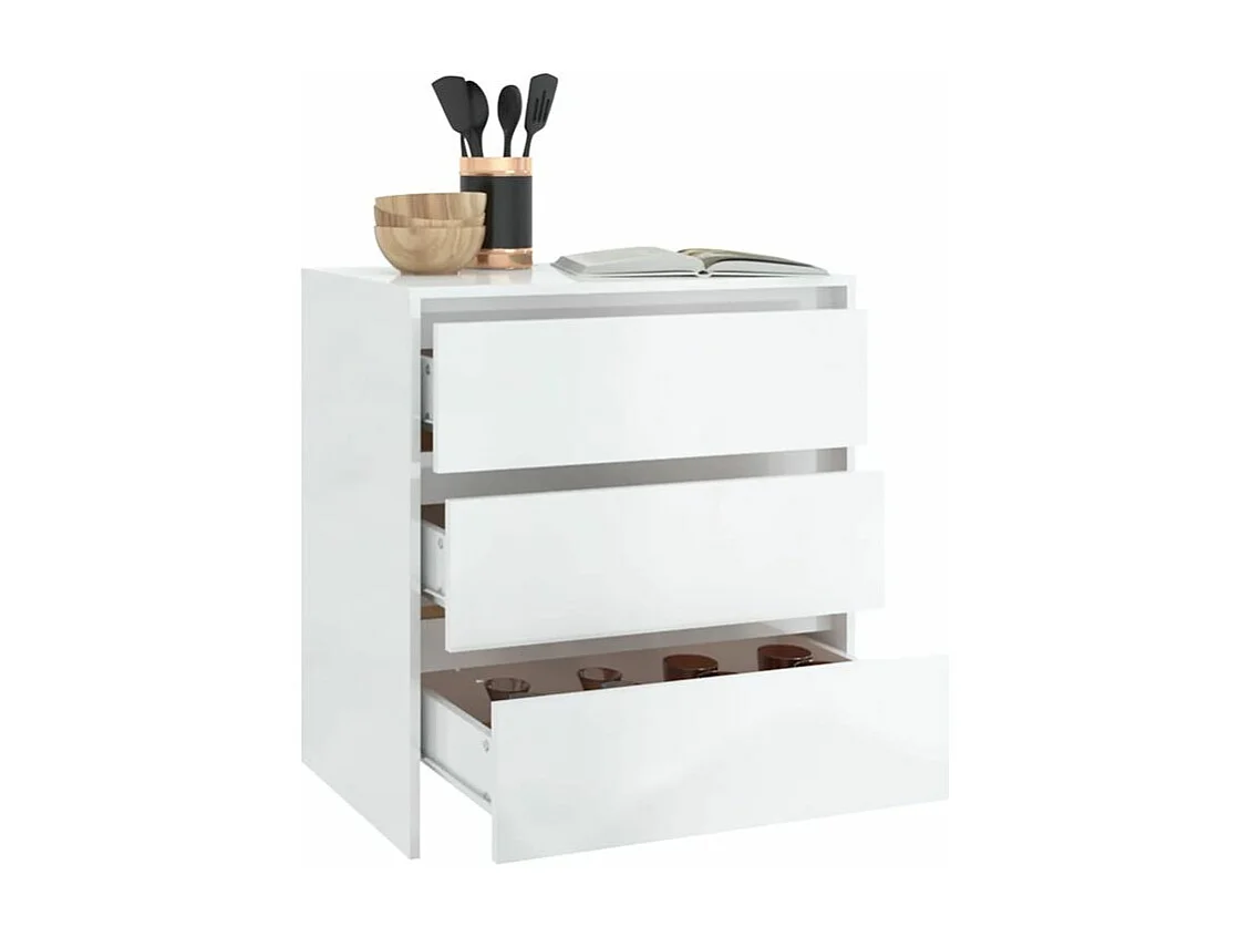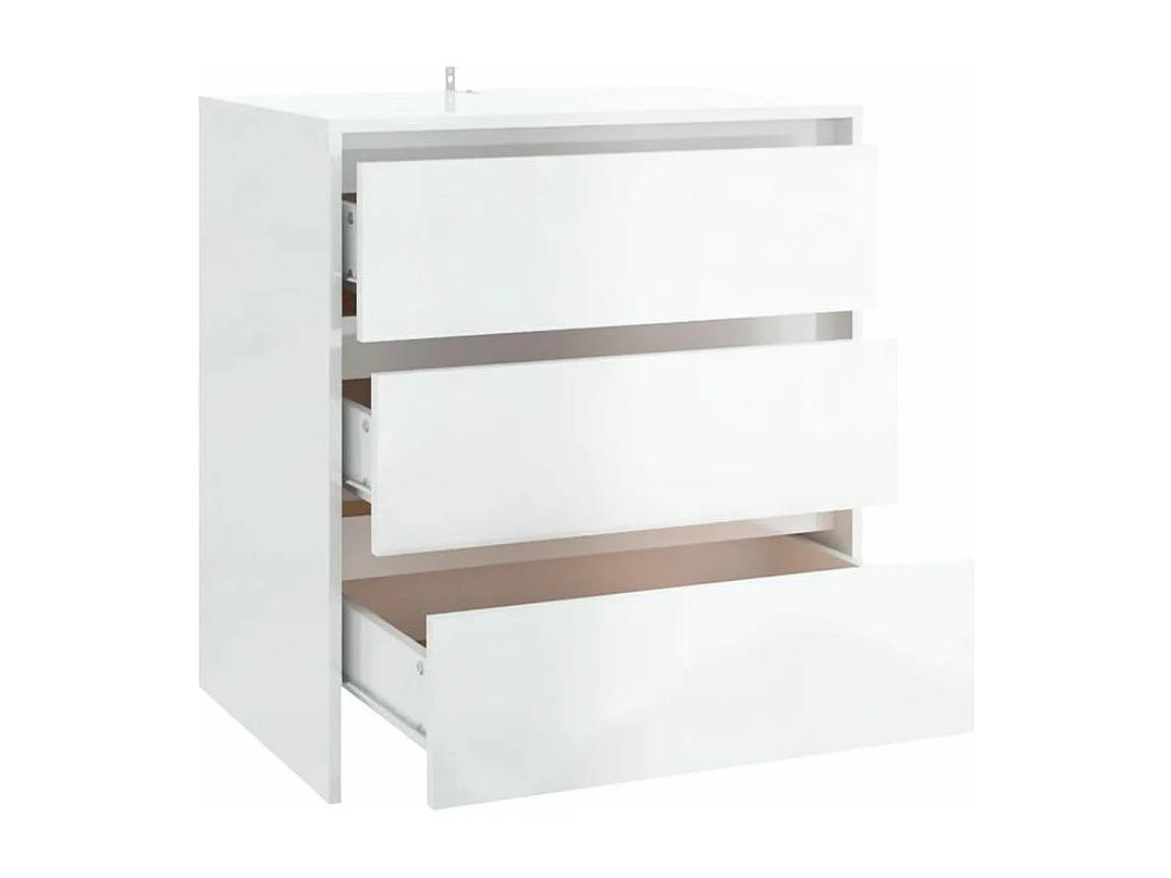 Commode 3 tiroirs en bois Klary 70cm - intemporelle et fonctionnelle-Couleur Blanc brillant