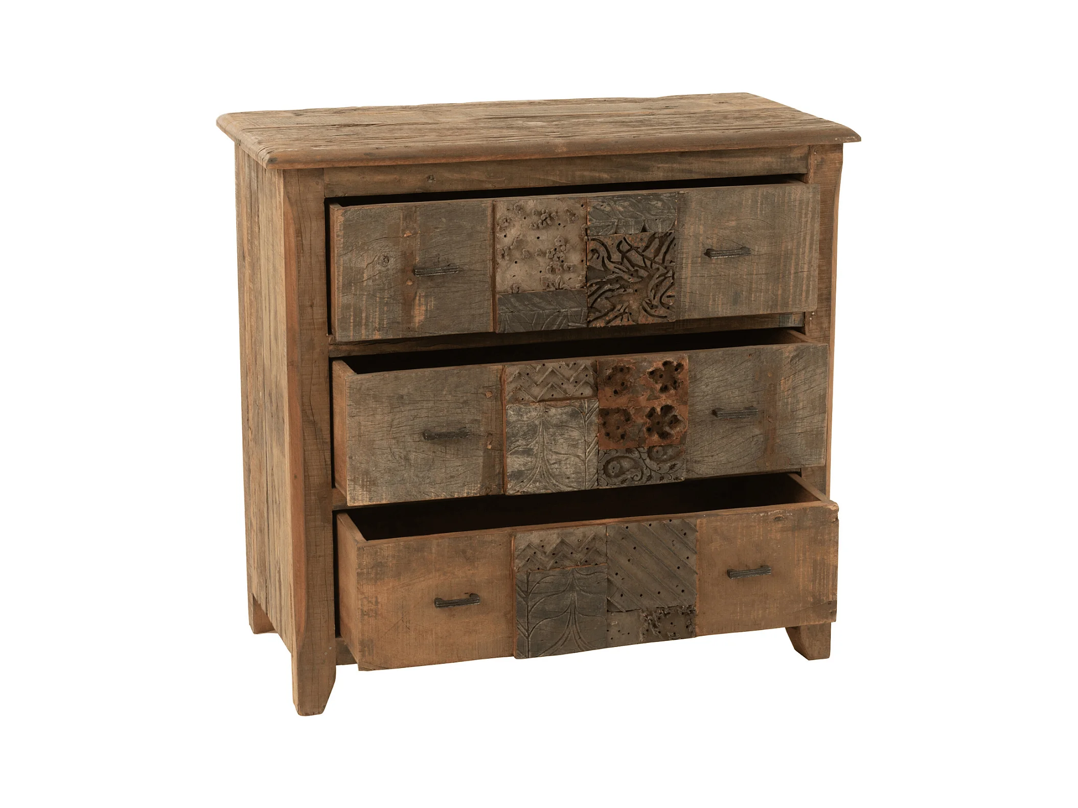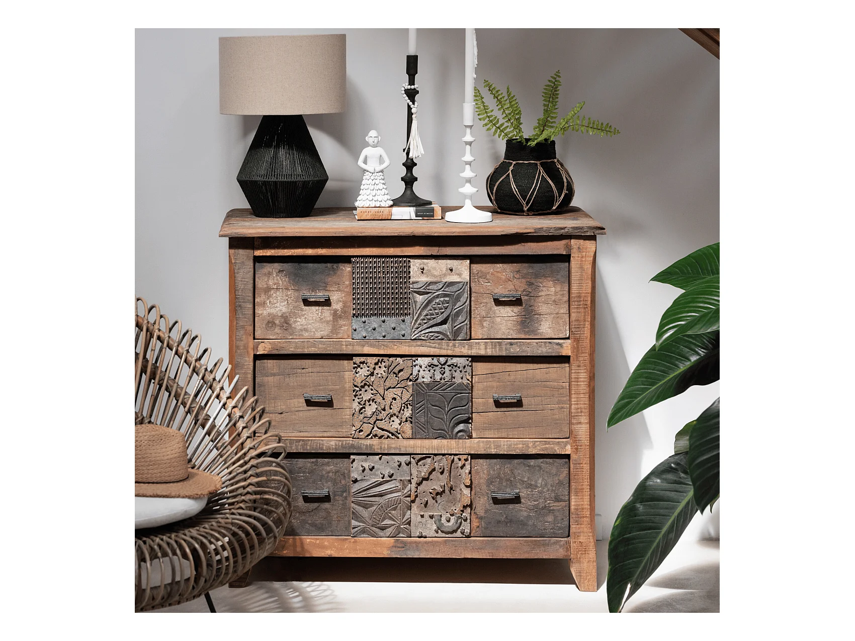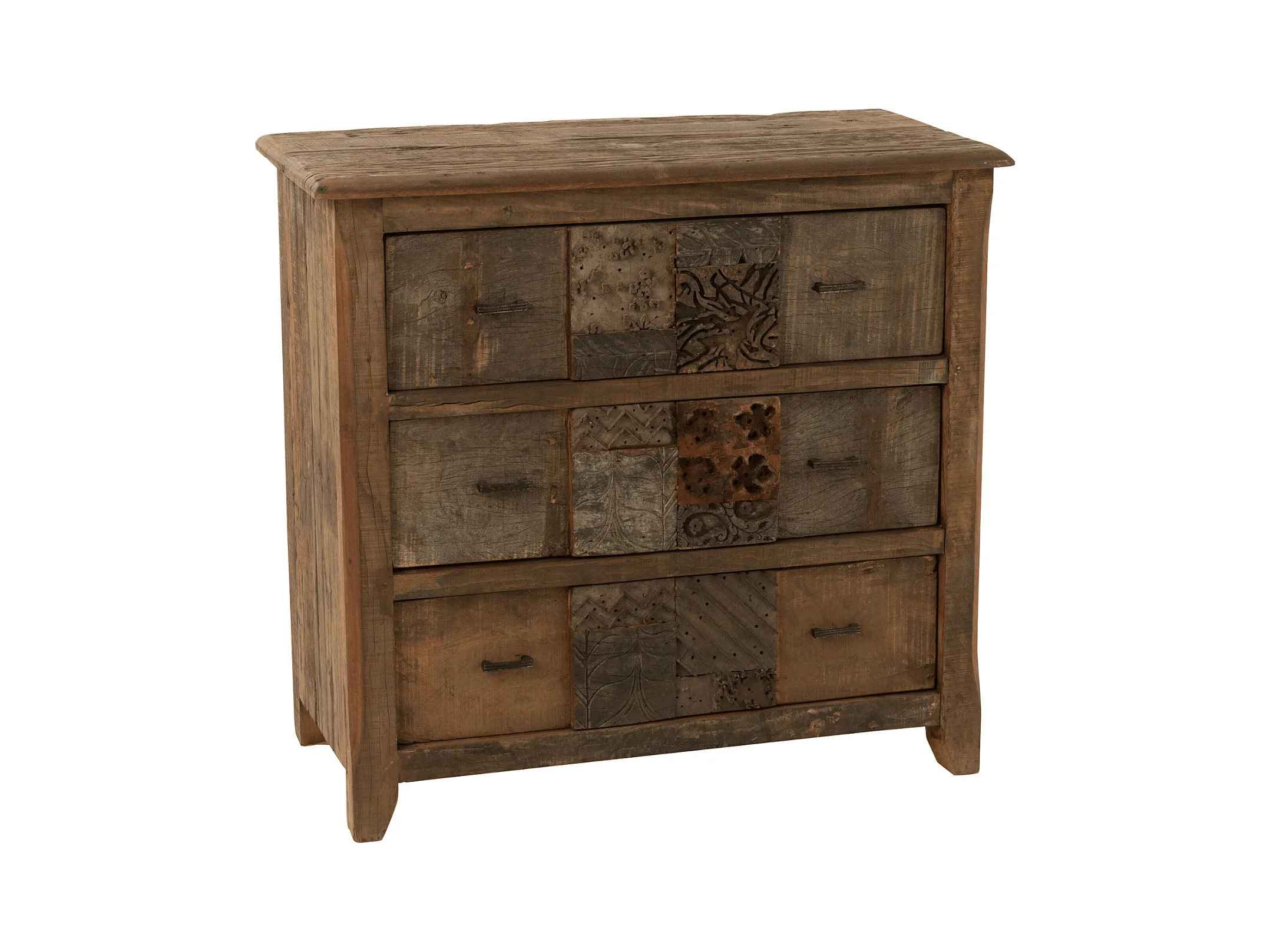 Commode 3 Tiroirs en Bois "Vieilli" 100cm Marron