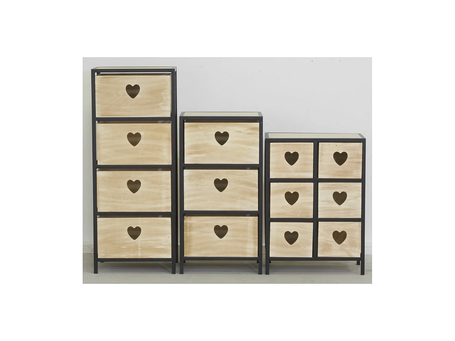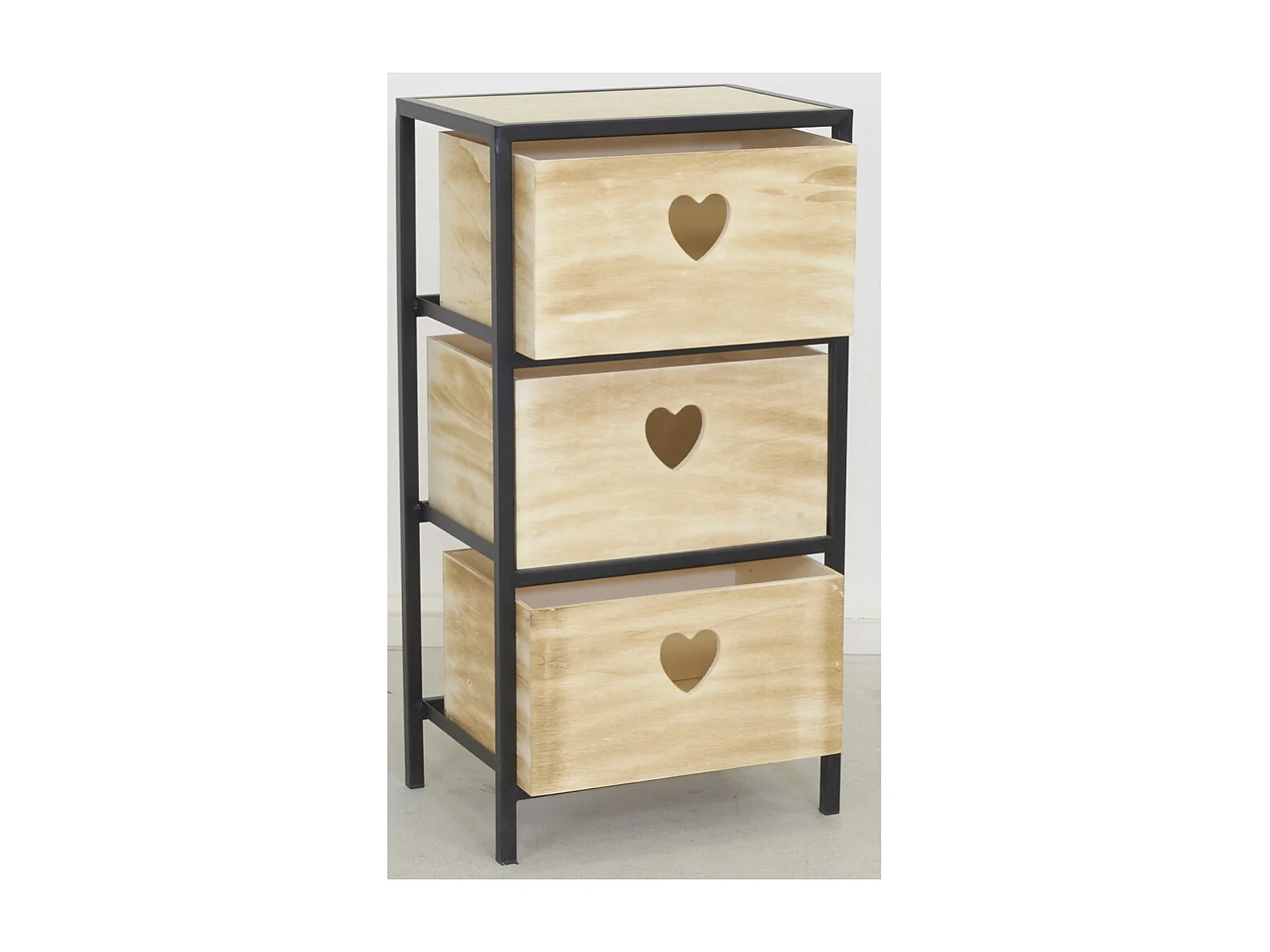 Commode 6 tiroirs en bois naturel Coeur 2 x 3 tiroirs