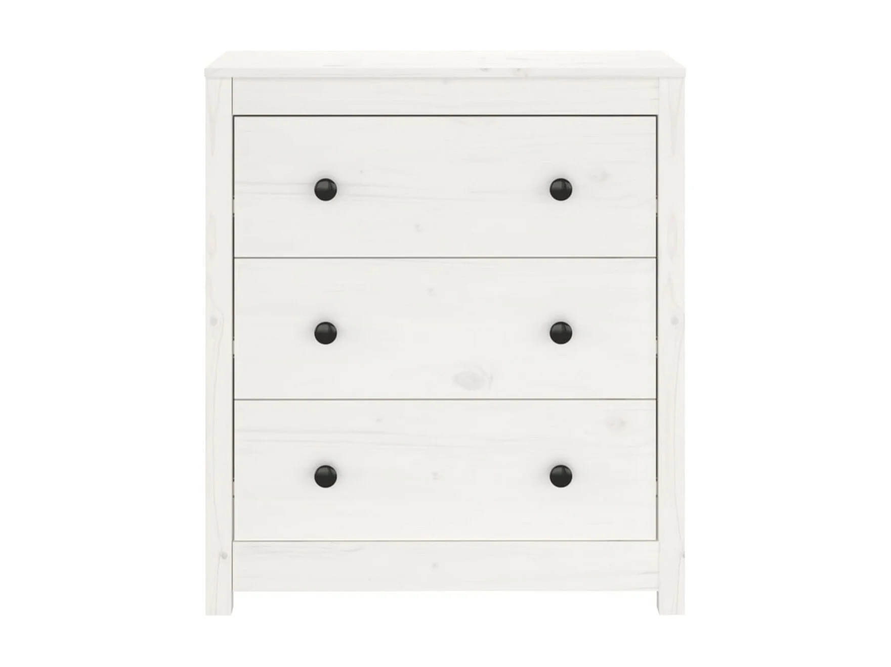 Commode 3 tiroirs en pin massif – Collection Aloska-Couleur Blanc