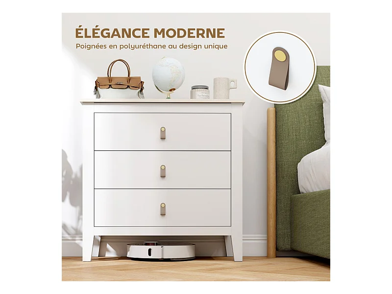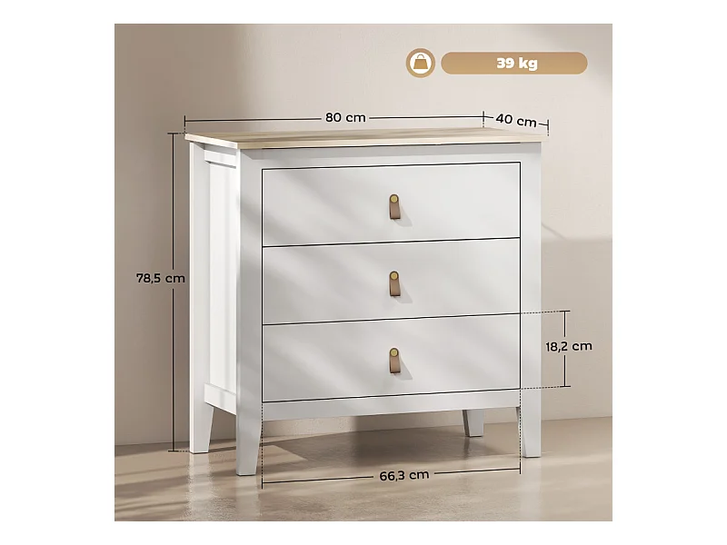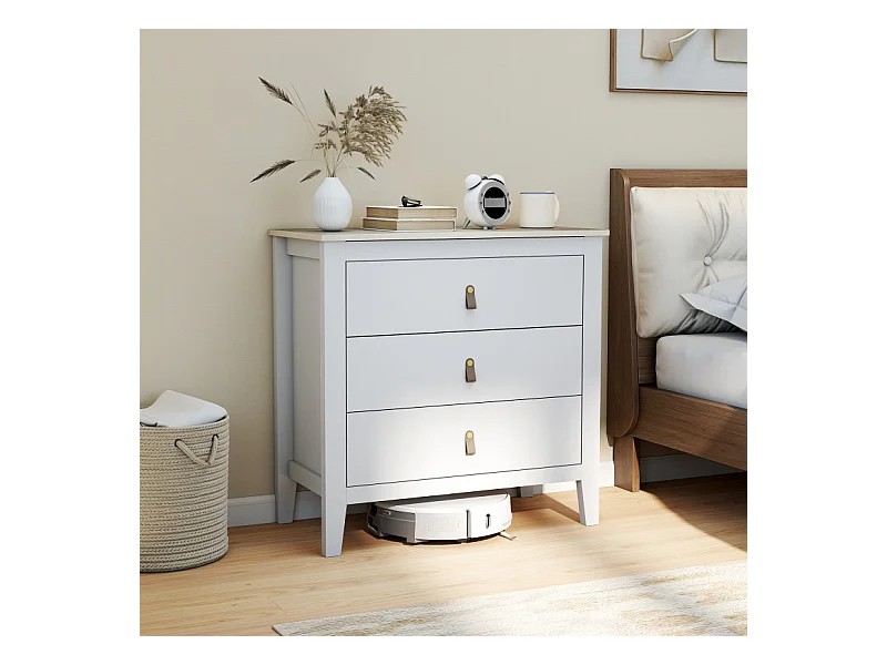 Commode 3 tiroirs LIAM effet bois blanc