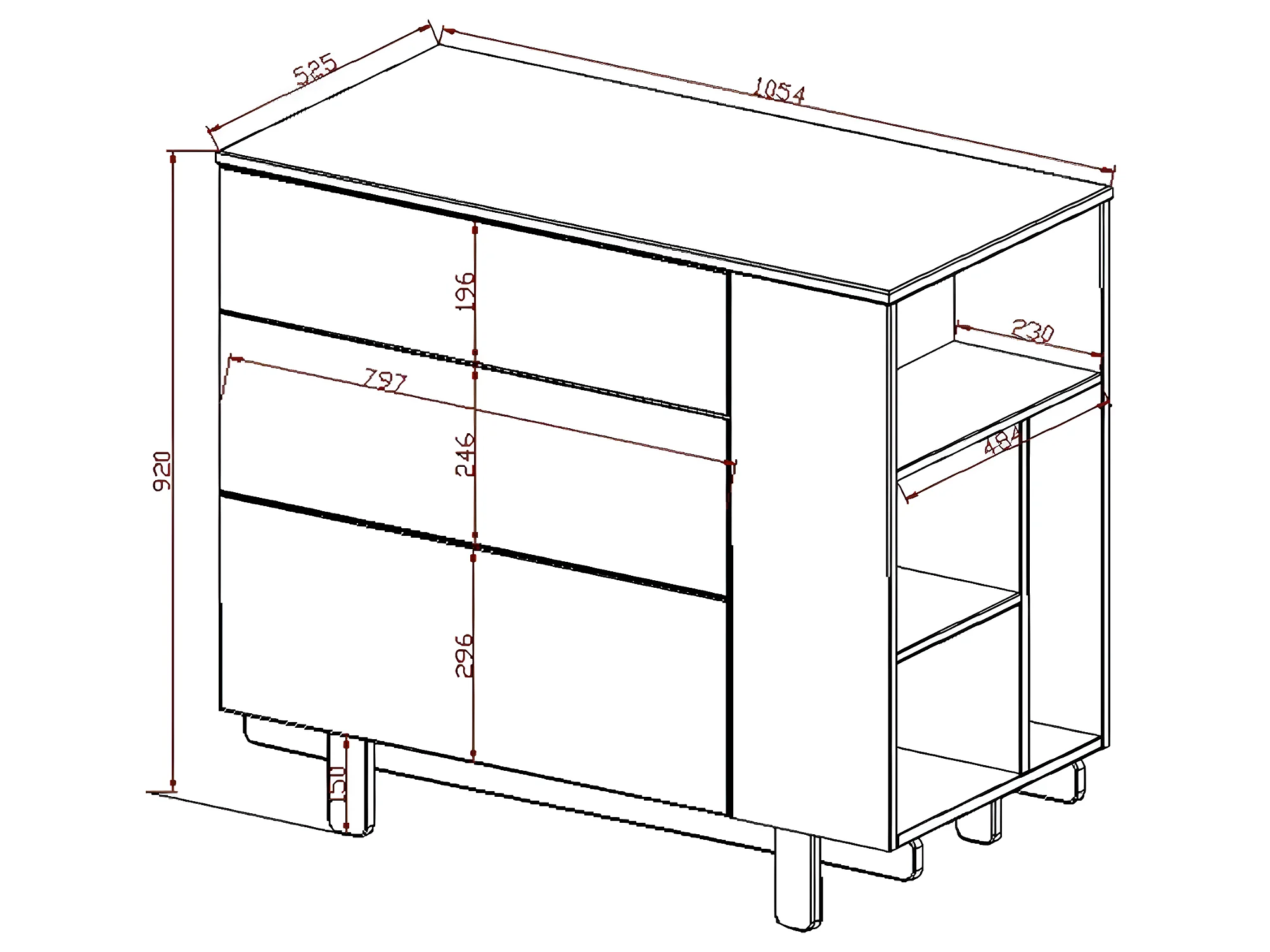 Commode 3 tiroirs Romy - Cachemire
