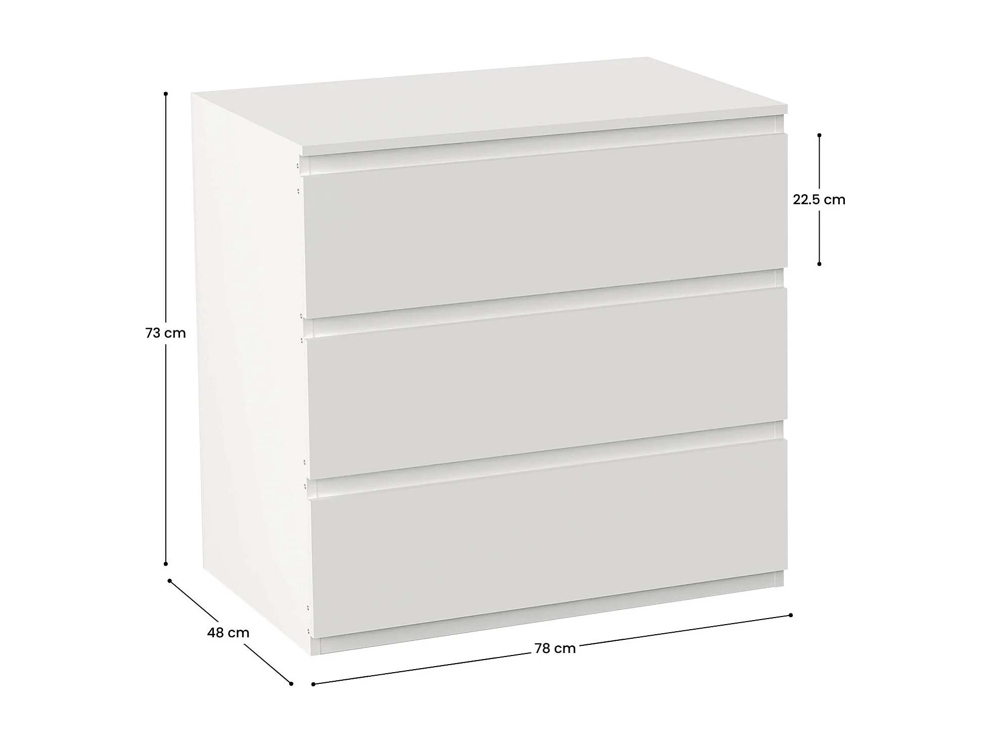 Commode 3 tiroirs coulissants dim. 80L x 39l x 73H cm blanc